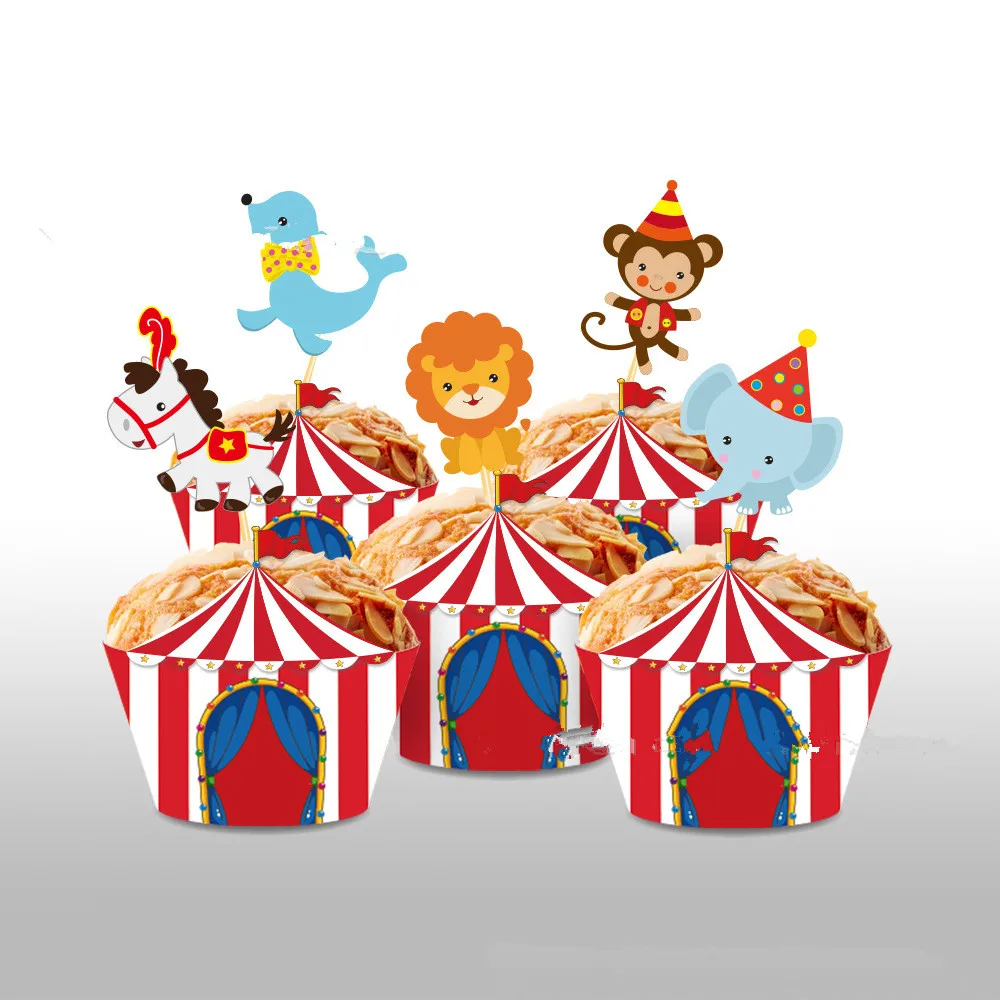 Карнавал цирк День Рождения Вечеринка кекс Топпер обертка мультфиль...