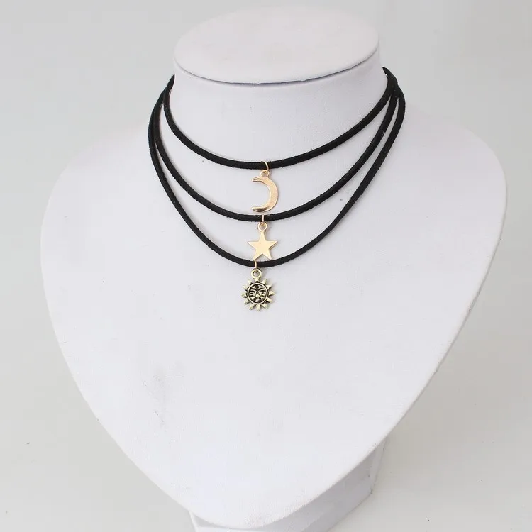 Многослойное бархатное ожерелье с тремя частями Солнце Луна и звезда универсальное короткое ожерелье для свитера для женщин оптовая продажа