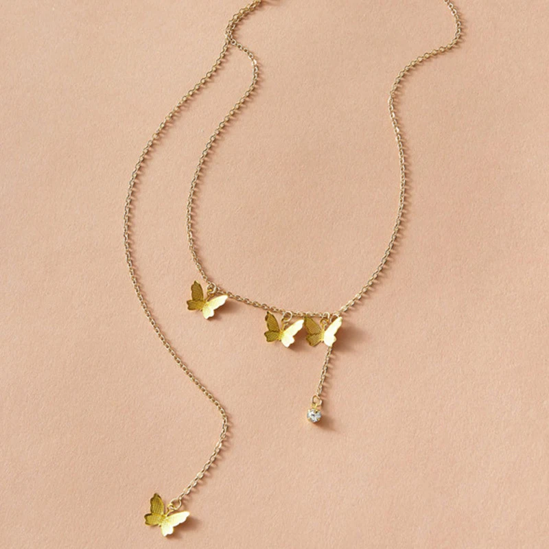 Цепочка Женская на ключицы, с бабочкой золотого цвета, свадебная, кулон, ожерелье, элегантные