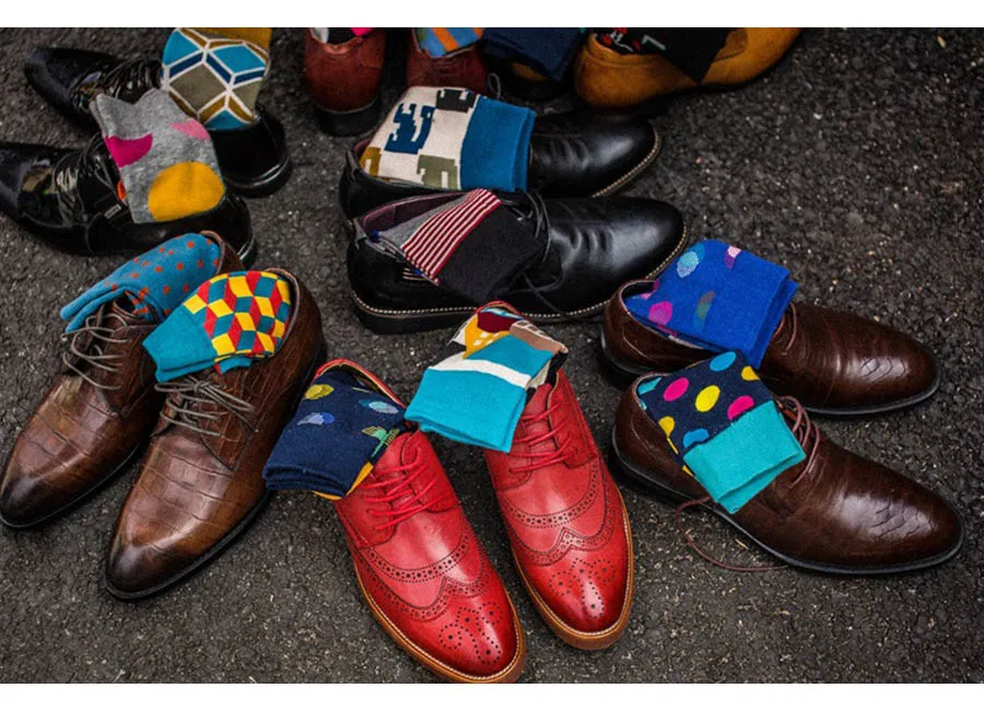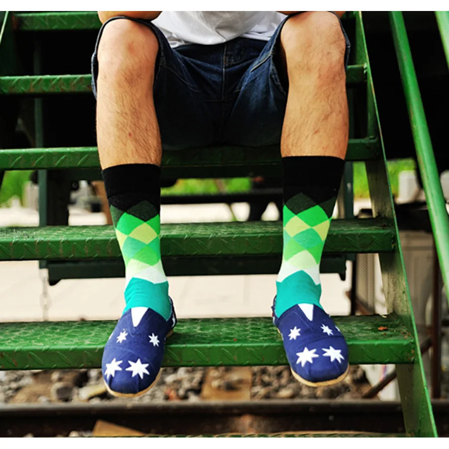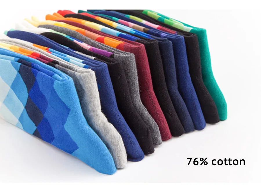 Носки мужские классические, хлопок, повседневные, деловой стиль, цветные, градиентный рисунок в клетку с бриллиантами, смешные