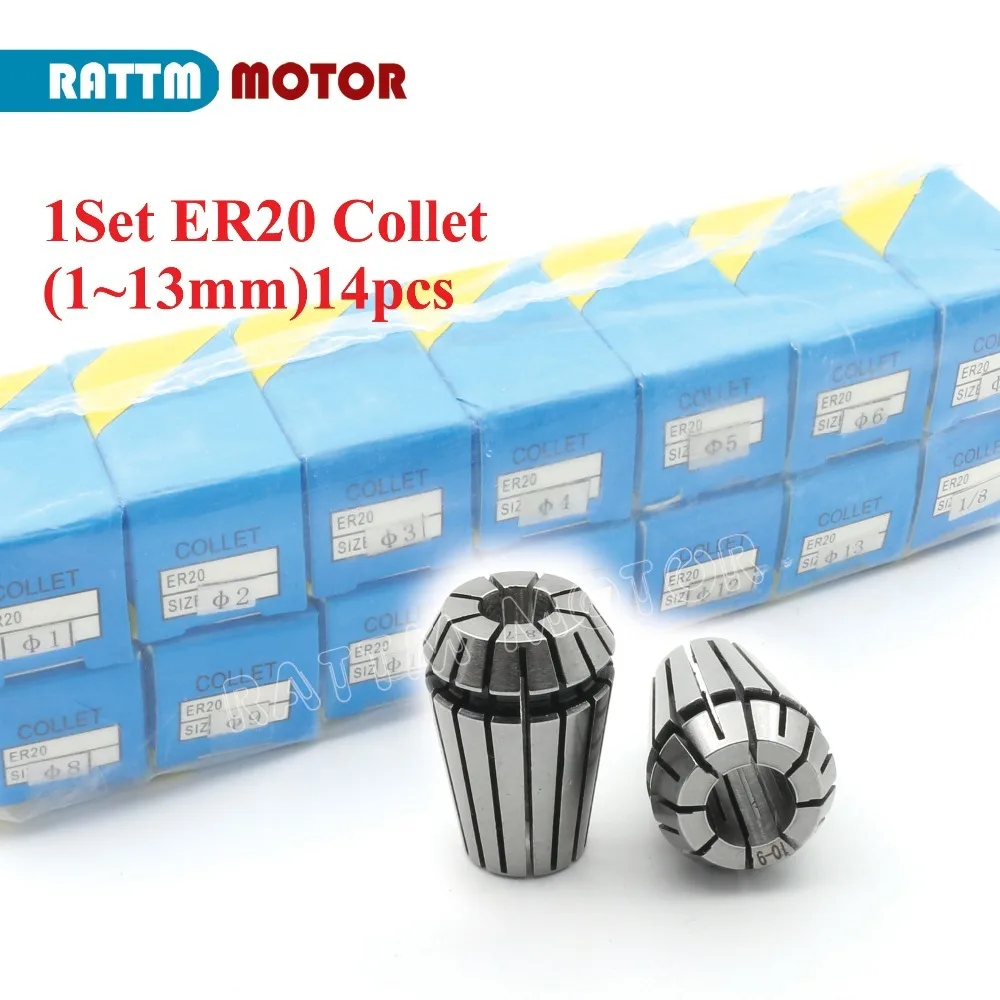 Бесплатная доставка 1 комплект ER20 (1-13 мм) 14 шт. цанга, бьющаяся 0,1 мм Точная пружинная Цанга для фрезерного станка с ЧПУ и шпиндельного двигателя