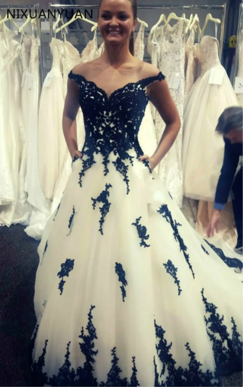 Женское свадебное платье с карманами, черно-белое кружевное платье с аппликацией, 2021, размера плюс