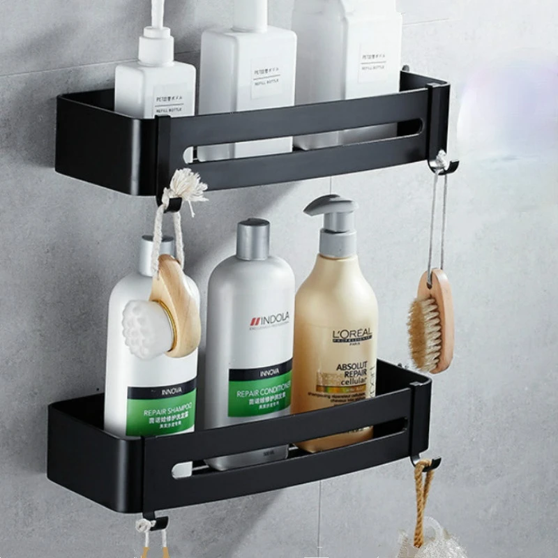 Угловая полка для ванной комнаты, черные алюминиевые настенные полк...