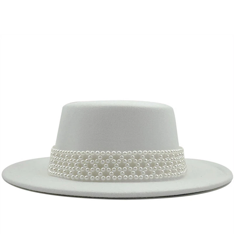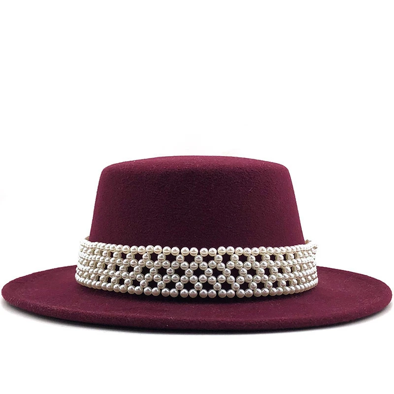 Женская шерстяная фетровая шляпка с широкими полями, украшенная жемчугом, для свадьбы, вечеринки, церкви