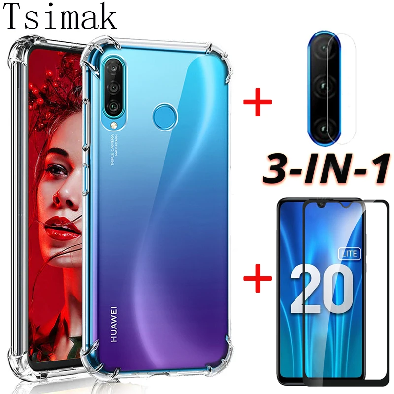 Чехол для Honor 20 Lite s, стекло + камера, мягкий силиконовый чехо...