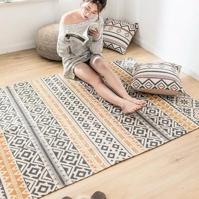Коврик из хлопка и льна в этническом стиле, большой коврик напольны...