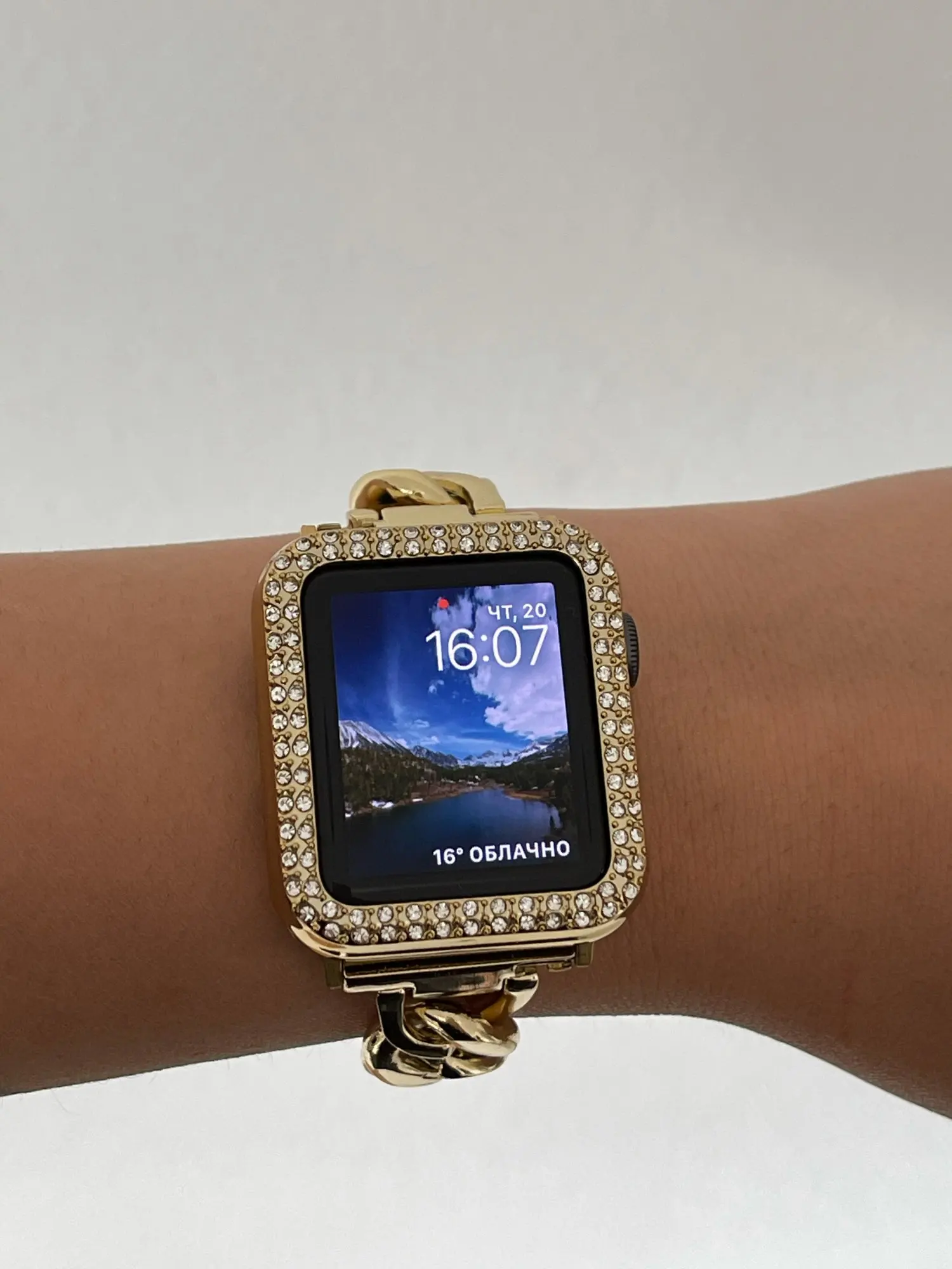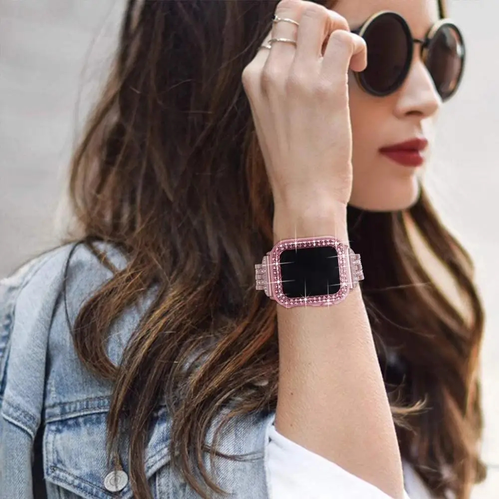 Бриллиантовый защитный чехол для Apple Watch Series 5 4 3 2 1 38 мм 42 мм, чехлы для Iwatch 5 4 40 мм 44 мм, ремешок для часов, бампер