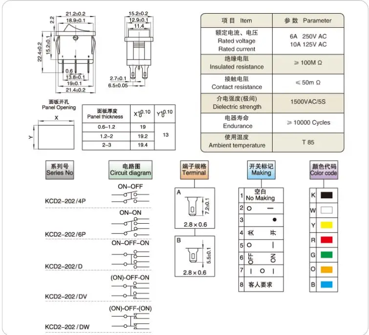 Кнопочный переключатель, 10 шт., 15x21 мм, SPST 2Pin, KCD11, KCD1, ...