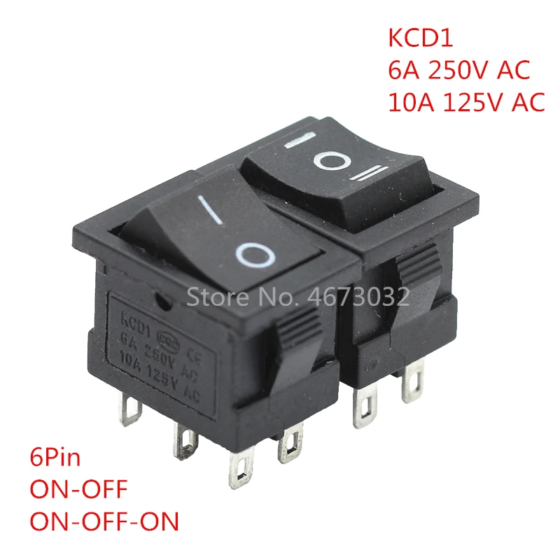 10 шт. KCD1 KCD4 черный кулисный переключатель питания вкл.-ВЫКЛ.-ВКЛ. 2 положения3 положения 6 контактов без подсветки