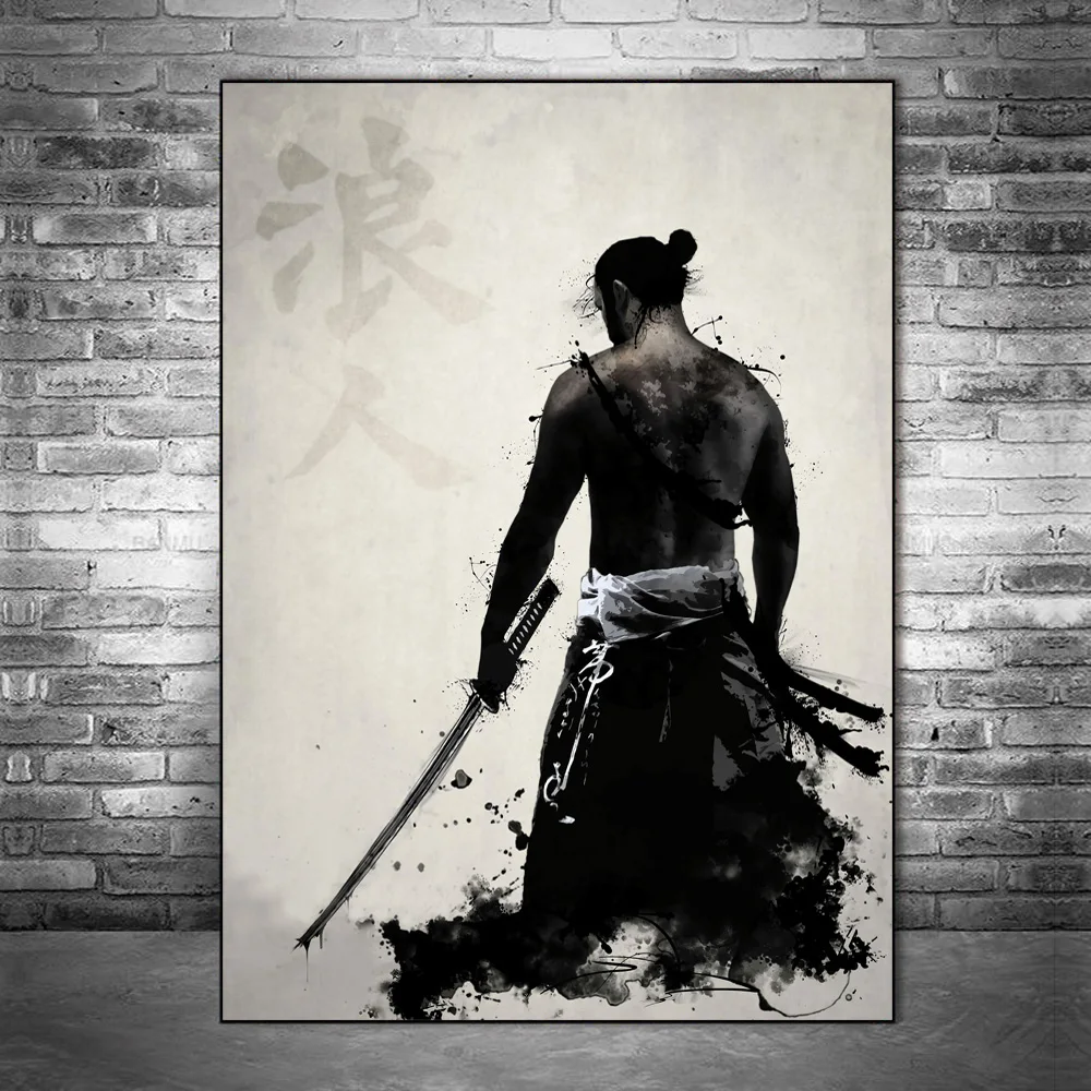 Черно-белые японские бронированные аниме постеры и принты самурайского самурая картина маслом на холсте картины на стену искусство для украшения дома