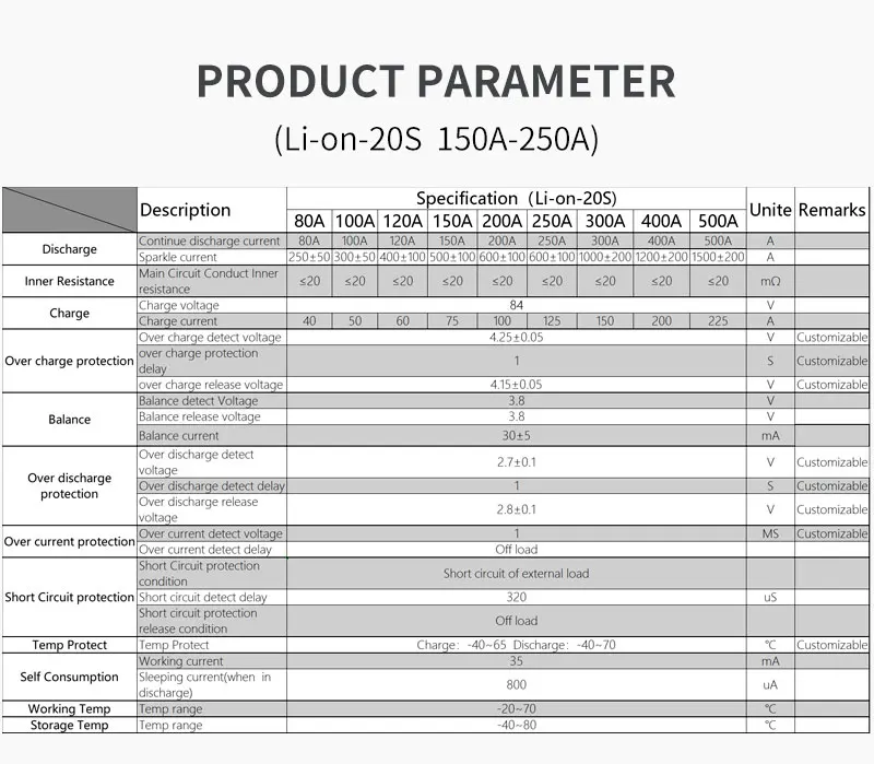 18650 smart BMS 20S 72V 150A 200A 250A Bluetooth 485 к USB устройству CAN NTC UART программное обеспечение Li-on Battery protection Board BMS◆ В настоящее время все умные BMS без водонепроницаемой функции.◆ Эта ссылка предназначена для литий-ионного аккумулятора 20S 72V. Пожалуйста, заполните параметр после размещения заказа, чтобы обеспечить SOC правильной информацией.По крайней мере, ответ должен быть отправлен нам Aliexpress центром сообщений. Спасибо.Особенности◆ UART: это обычный продукт Daly. UART является универсальным асинхронным приемником/передатчиком, он трансформирует данные для передачи между последовательной связью и параллельной связью. Как чип для преобразования параллельных входных сигналов в серийные Выходные сигналы, UART обычно интегрируется в другие коммуникационные интерфейсы.◆ RS485: Пожалуйста, выберите модель RS485 Daly. RS-485 принимает сбалансированную передачу и дифференциальный прием, поэтому он имеет способность подавлять помехи в обычном режиме.◆ Модуль Bluetooth: если вам нужна эта функция, пожалуйста, выберите модуль bluetooth, если вы не покупаете его, мы не отправим его вам.◆ Ниже аксессуары нужно купить отдельно.1.USB к UART кабель 2.USB к RS485 кабель 3. Модуль Bluetooth 4. Панель дисплея питания (активация ключа) 5.BMS сенсорный экран управления1. DL 20S 72V Smart BMS 150A 200A 250A bms можно использовать для 20S Li ion или LiFePO4 или аккумулятор лто. Клиент может отрегулировать paramter перезарядки или переразряда параметр сидя и другие параметры, если клиенту нужно использовать какой тип батареи для той же серии батареи.Внимание:Клиент должен определить серии батарей, затем выбрать ту же серию BMS. Например, ваш аккумулятор 24S, вы должны выбрать 24S BMS, не можете выбрать 20 или другой. Номер серии BMS фиксирован, не регулируется после отправки BMS.◆ Инструкции по управлению: контроль устройства дистанционного управления.◆Значок транспортного средства: передача данных отправка команды◆Статистический отчет: собирайте информацию о данных, клиент может контролировать емкость аккумулятора и другую информацию о тревоге.◆Электронный забор: Предельный Диапазон забор.◆Информация об устройстве: информация о параметрах устройства и т. д.Информацию о вашем аккумуляторе можно проверить на вашем хост-компьютере, затем вы можете контролировать состояние батареи в любое время. Который легко контролирует ваше устройство. Умные BMS делают нашу жизнь легкой.