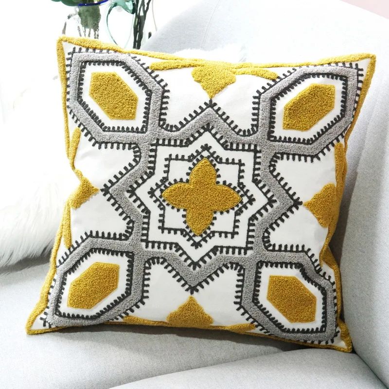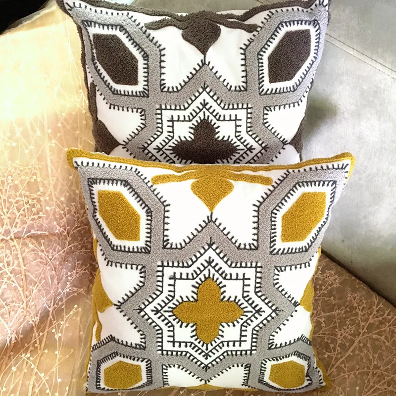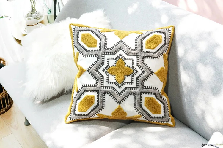 Наволочка для подушки с геометрической вышивкой, 45x45 см