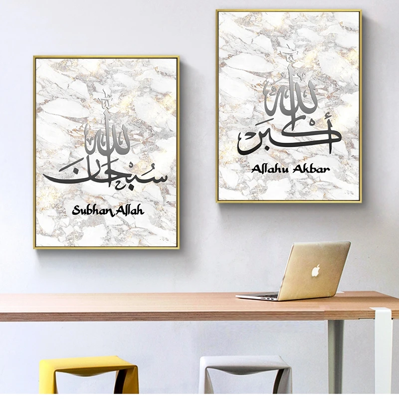 Мрамор текстура Субхан Аллах мусульманство ислам холст с каллиграфией Плакаты и принты настенные картины висячий мечети для Гостиная