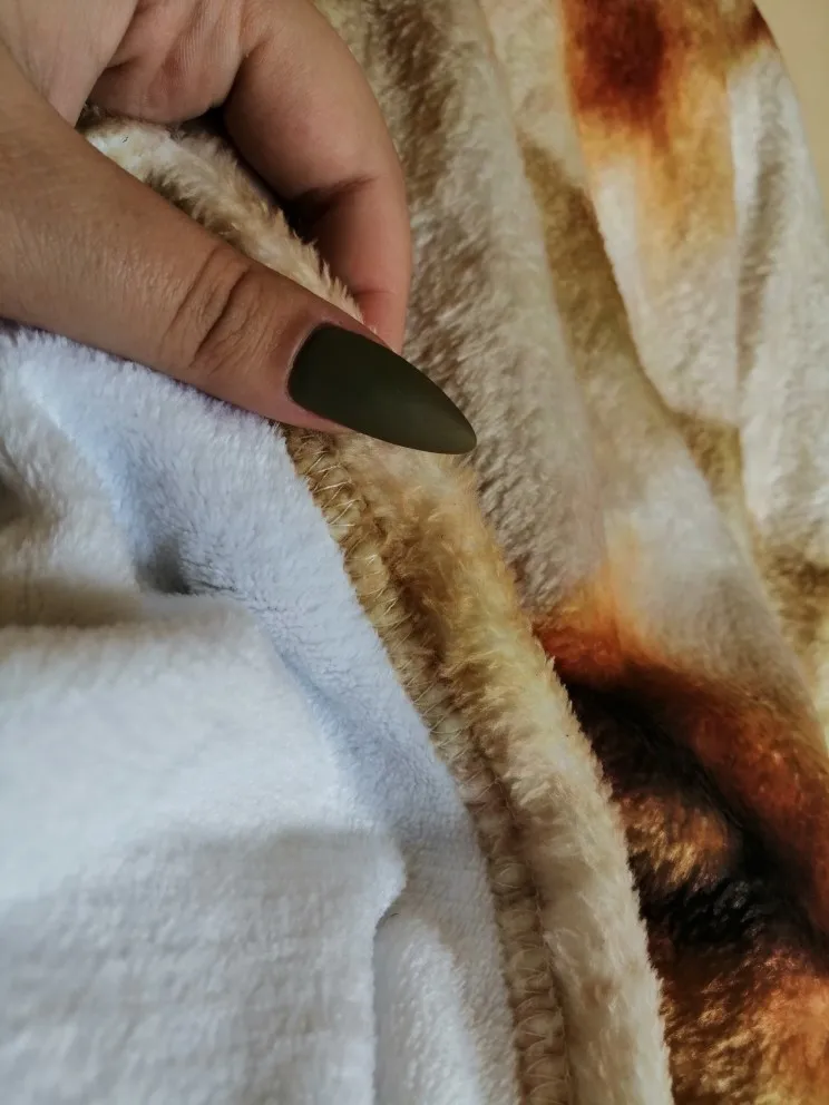 Абсолютно потрясающее одеяло, выглядит так реалистично и точно как на фото. Так забавно обернуть себя в одеяло и сделать вид, что вы буррито. Мне очень нравится это одеяло, и цена была действительно хороша для продукта, который я получил. Размер действительно отличный, он довольно большой и покрывает мою односпальную кровать и хорошо сидит вокруг меня, если я хочу носить его, это отличное одеяло, и я действительно рекомендую его!