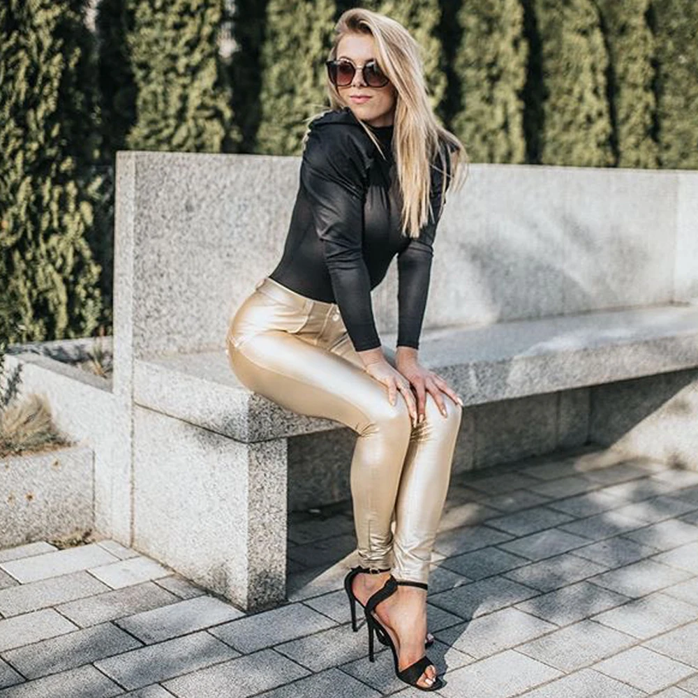 Женские брюки Melody, золотые кожаные Металлические леггинсы для тренировок, облегающие Суперэластичные компрессионные брюки для фитнеса, обтягивающие спортивные Леггинсы с эффектом пуш-ап