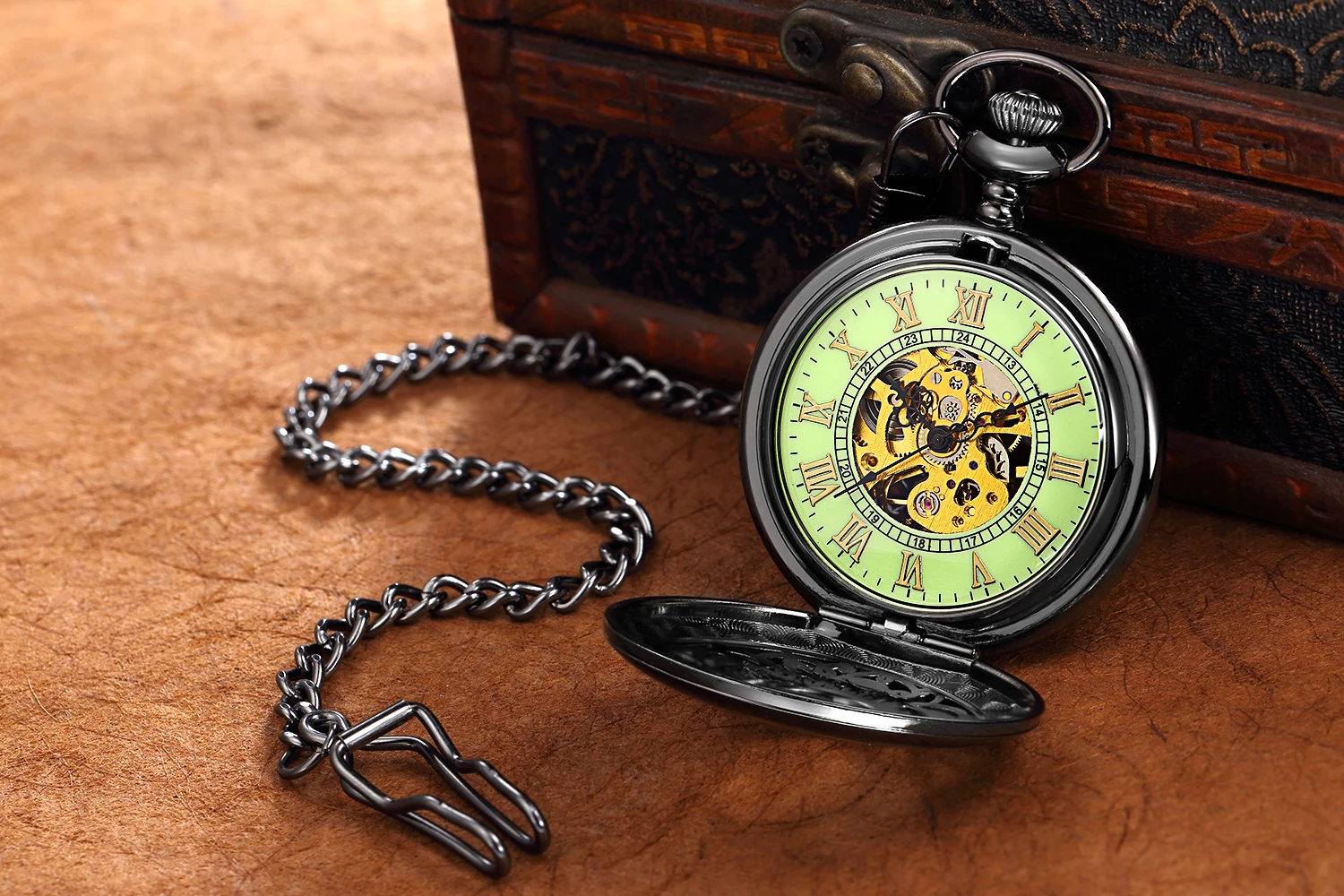 ORKINA 2019 механические аналоговые карманные часы Скелет резной че...