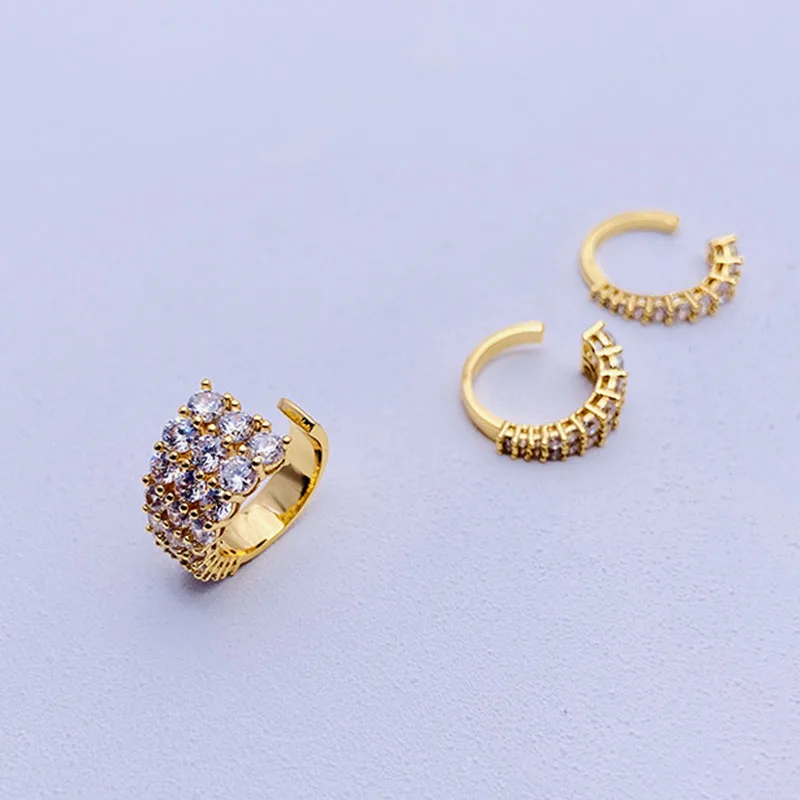 styleZircon rhinestone ear cuff earrings gold without piercing no hole