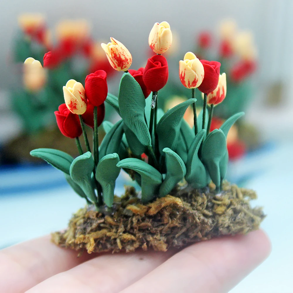 Миниатюрные аксессуары для кукольного домика 112, миниатюрные тюльпаны, даффины, моделирование Утренней славы, садовая Цветочная модель, игрушки для кукольного дома, Декор