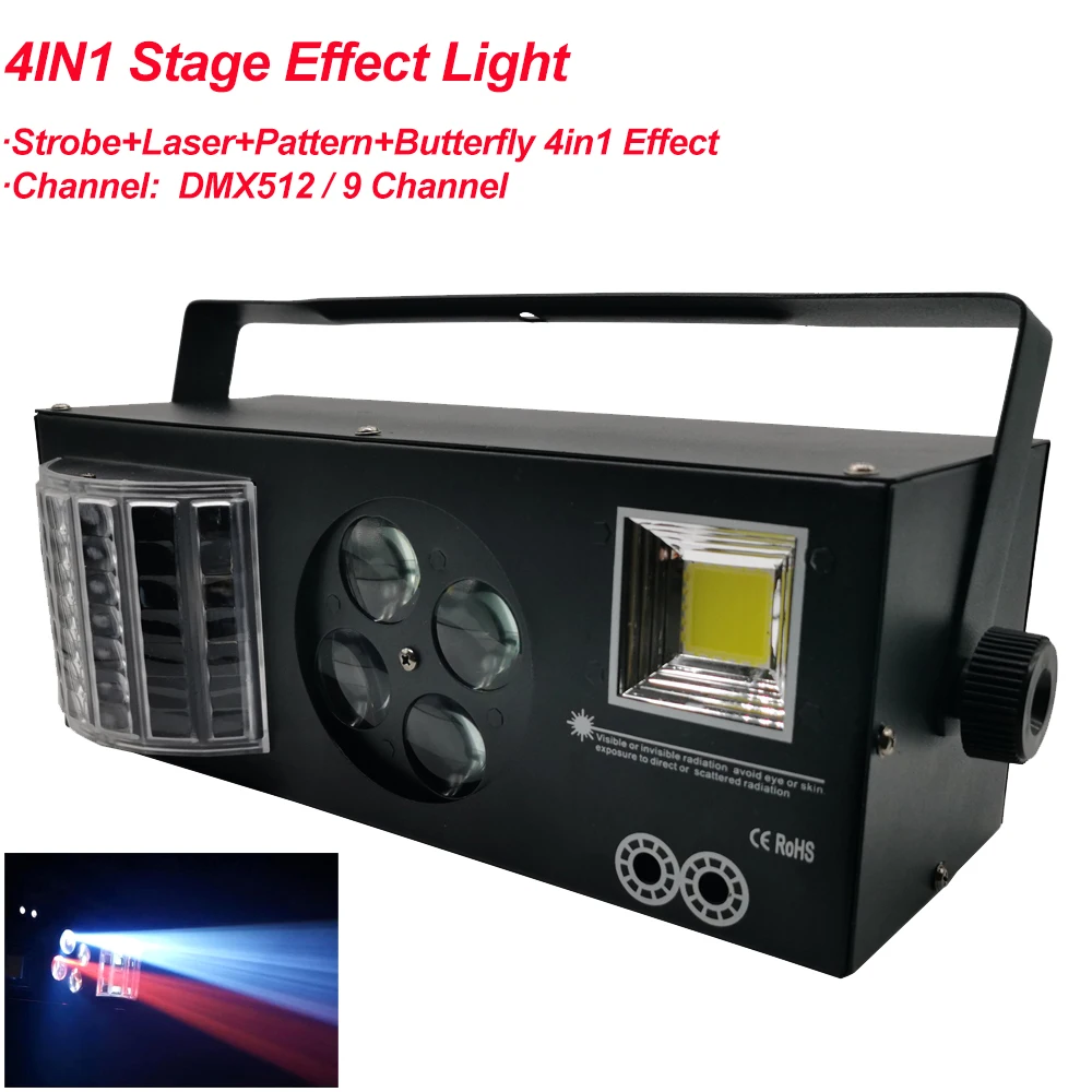 Новый DJ диско стробоскоп лазерный узор Бабочка 4 в 1 светодиодный эффексветильник для KTV семейвечерние НКА Свадьба Рождество DMX512 сценическое оборудование