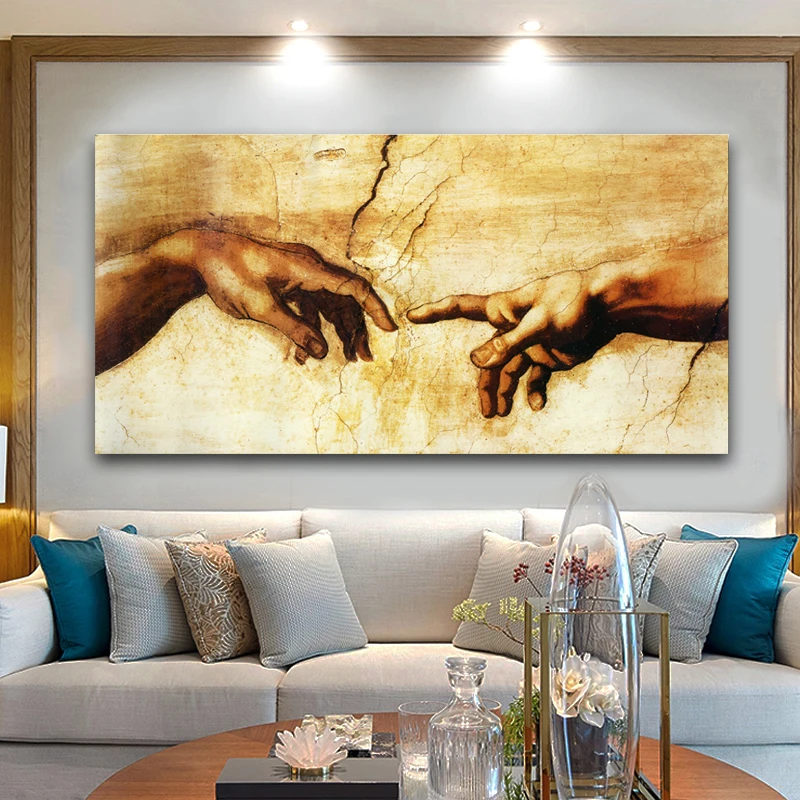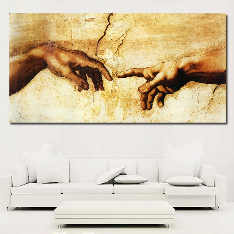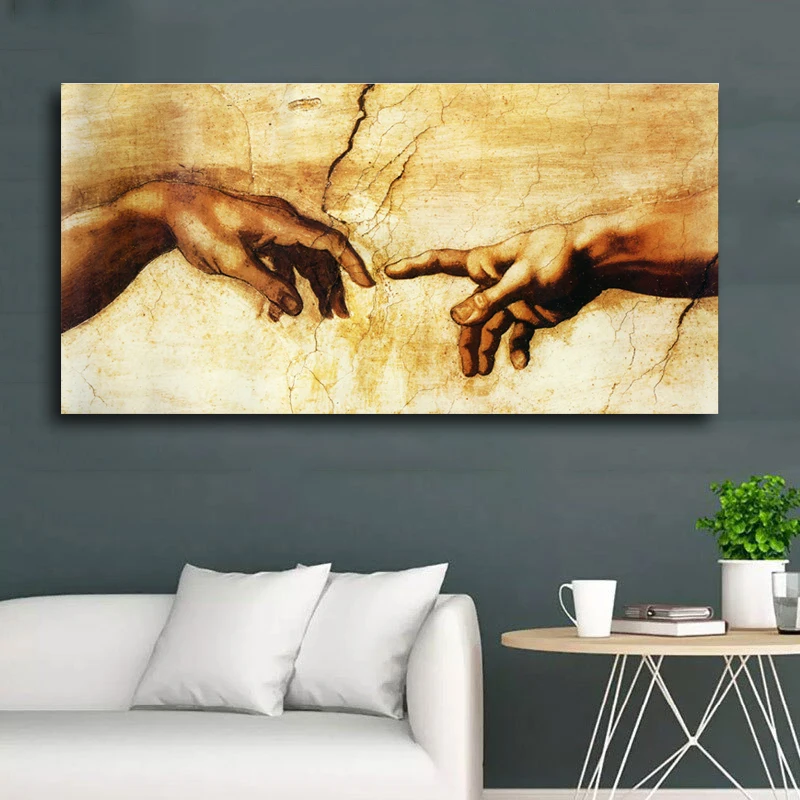 Картина на холсте, черно-белая, с изображением руки Бога, творчества Адама, настенные картины для декора гостиной (без рамки)