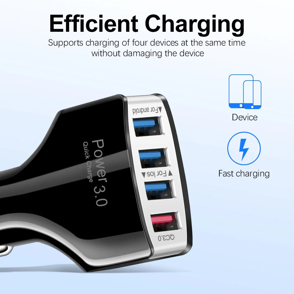 Для iPhone автомобильное зарядное устройство Quick Charge 3,0 4 порта Быстрая зарядка QC3.0 автомобильное зарядное устройство для телефона Samsung S10 автомобильный мобильный телефон зарядные устройства