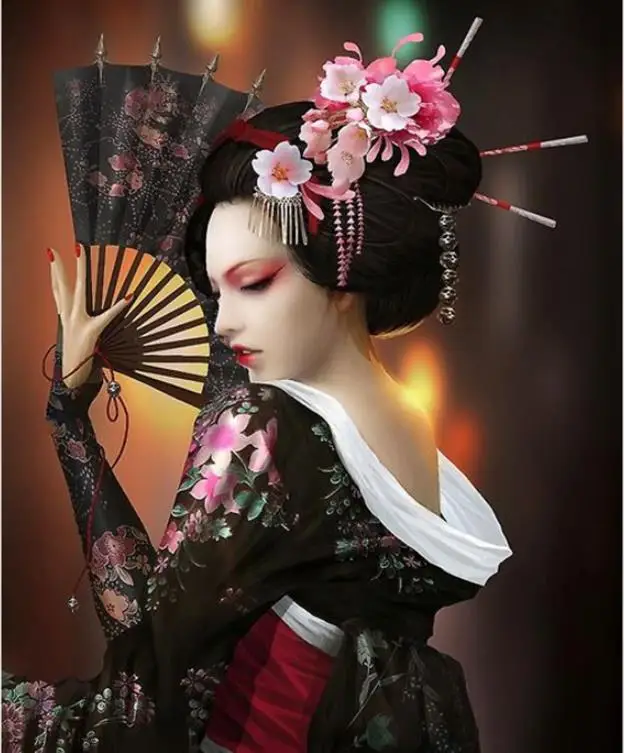 Алмазная 5D картина сделай сам, полноразмернаякруглая вышивка Японская женщина, вышивка крестиком, подарок, украшение для дома