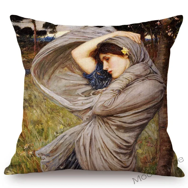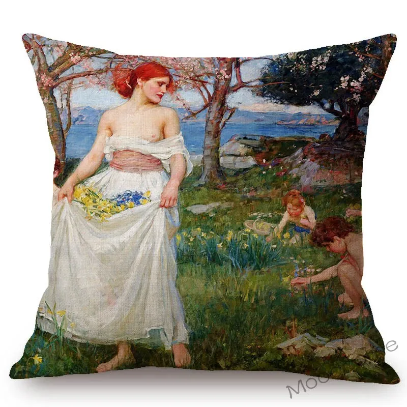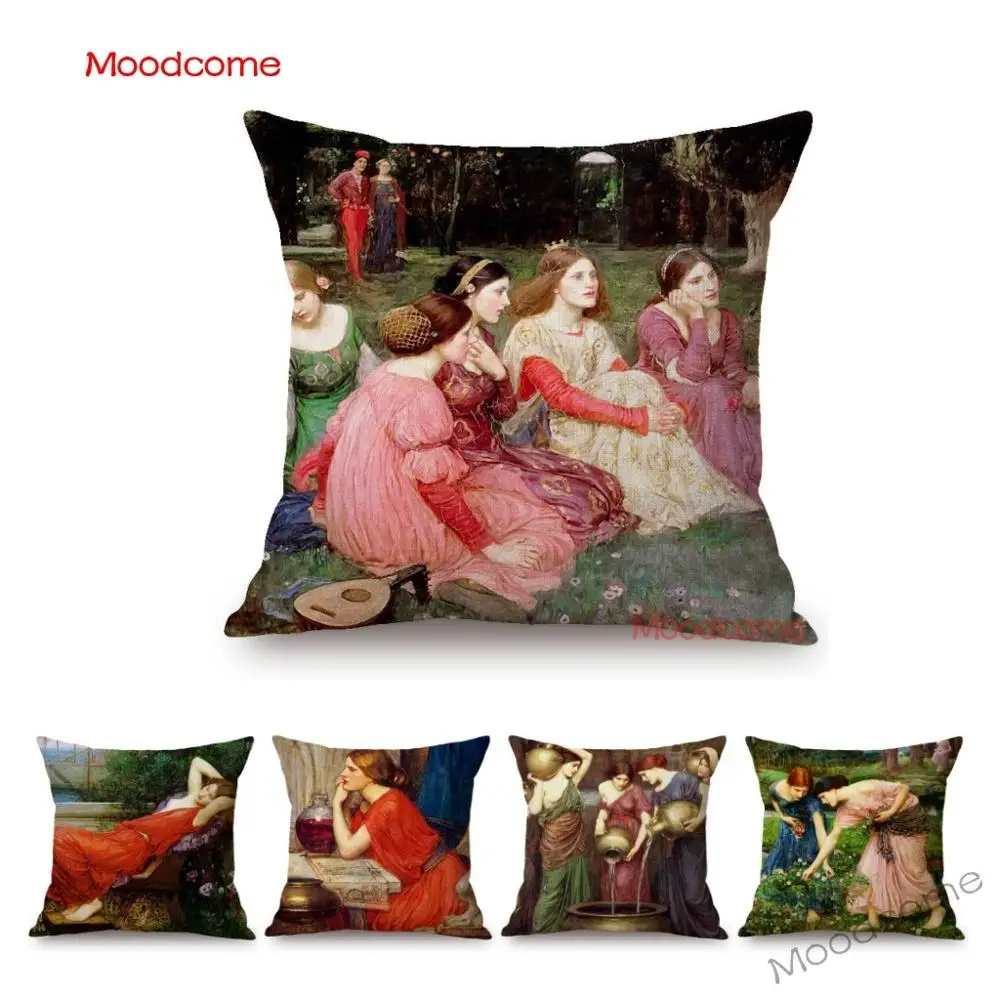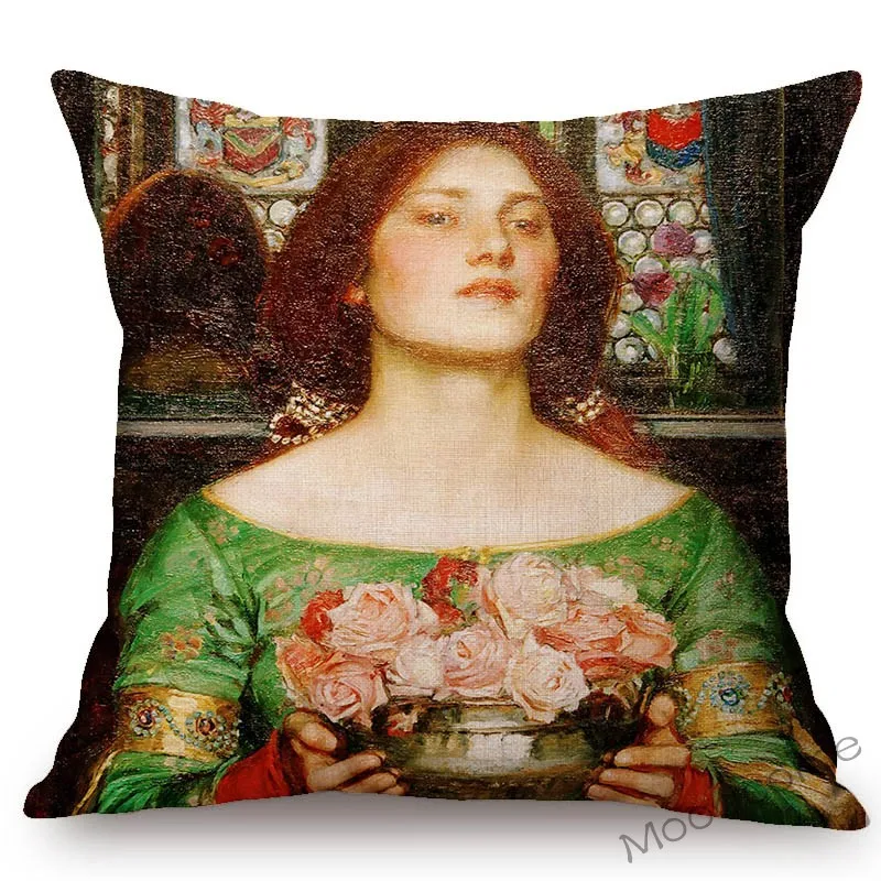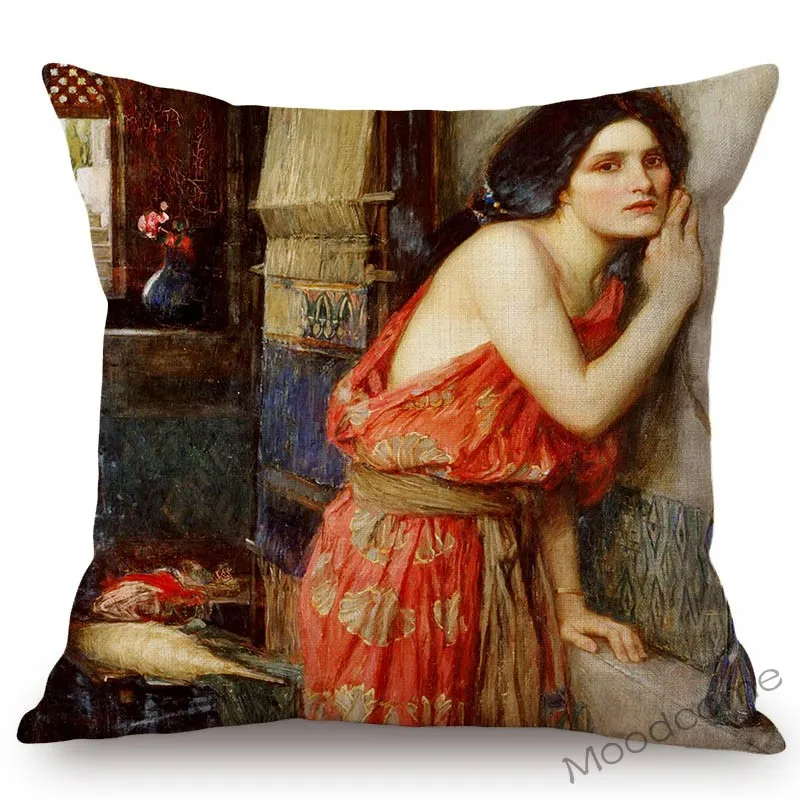 Картина маслом прерафаэлита, красивая молодая девушка, британский художник, Джон, Уильям, Водный дом, диван, подушка, чехол, льняная Обложка