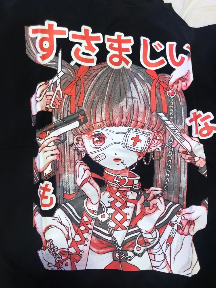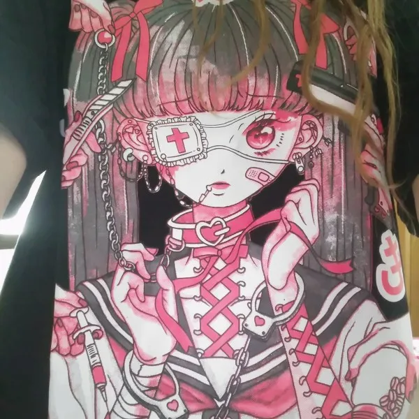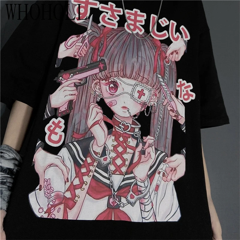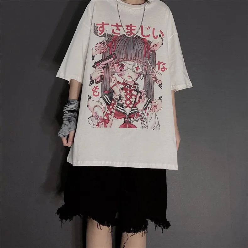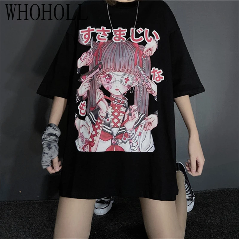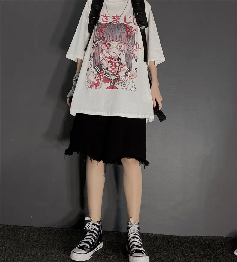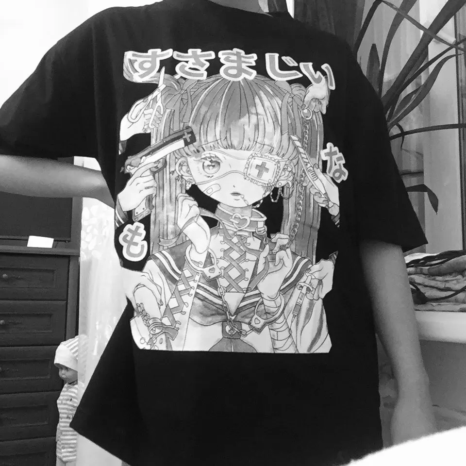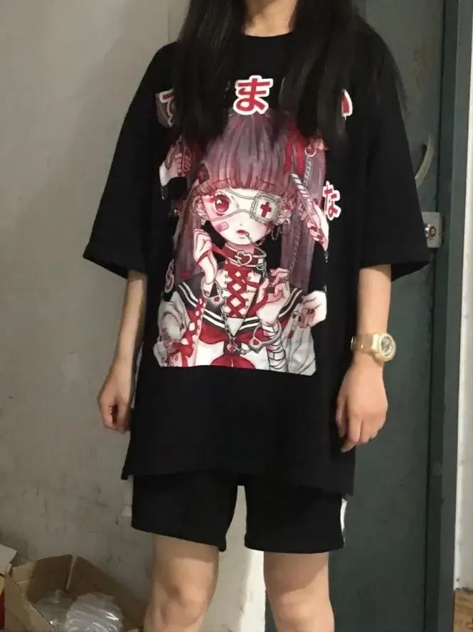 Женская футболка в готическом стиле, свободная, летняя, в стиле Харадзюку