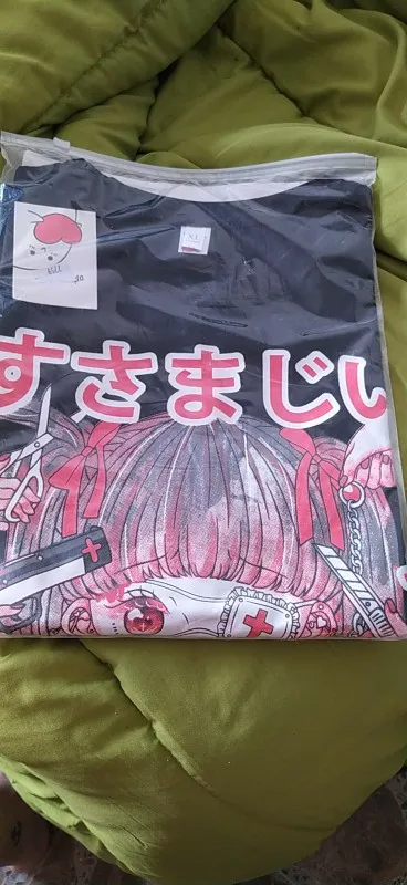 Это так идеально! Я купил XL (я 5'8 и около 130 фунтов), и он в основном точно такой же, как на фото! Я планирую носить его поверх юбок, и мне нравится длина рукавов и кайма, так как она не покрывает юбку, а рукава доходят до локтей. Это очень мило! Единственное, на что я мог жаловаться, это то, что когда вы впервые вынимаете его из упаковки, есть небольшой запах, но это очень легко исправить. Я также не знаю, насколько хорошо принт крепится к рубашке, так что я буду в основном ручная стирка, чтобы держать его в такте как можно дольше :) я также получил этот товар в течение двух недель после покупки, это было приятным сюрпризом, так как aliexpress, как правило, занимает больше времени!