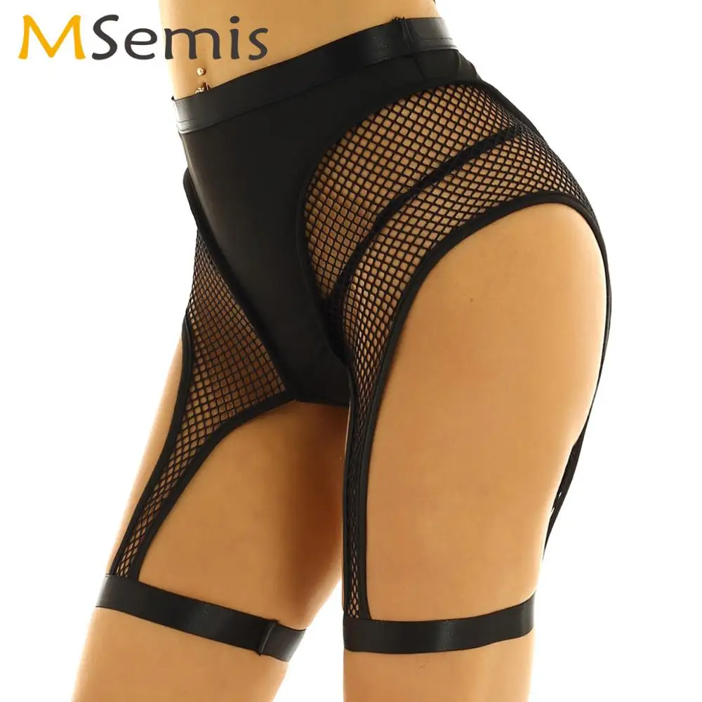 Женские вечерние шорты для ночного клуба с высокой талией, сексуальная прозрачная в крупную сетку, леггинсы с вырезами, трусики для танцев