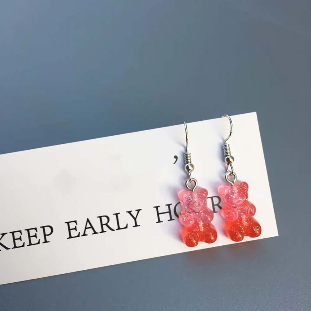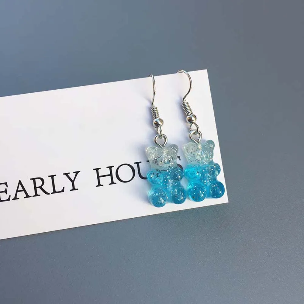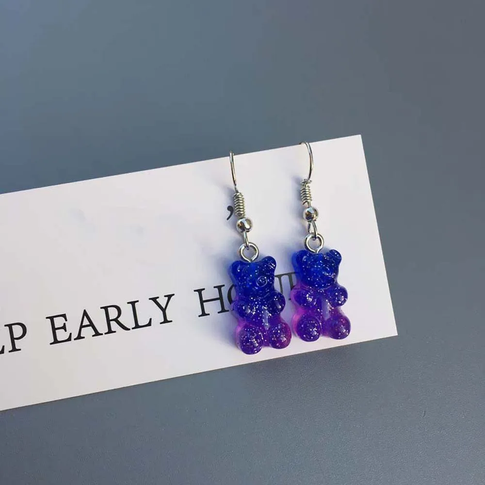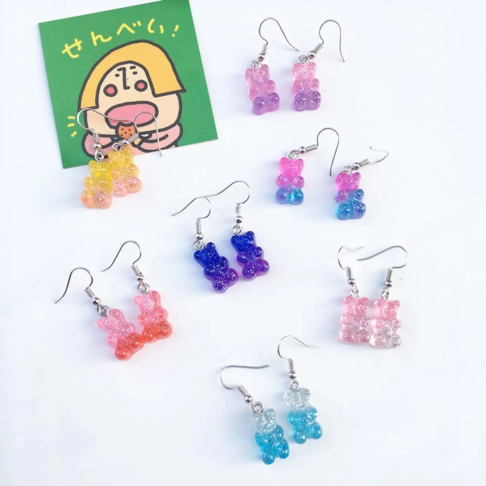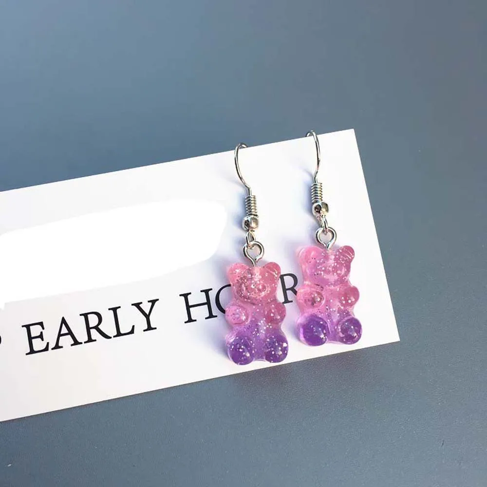 Модные забавные мини многоцветные серьги-капельки с желеобразными мишками для женщин милые висячие серьги с маленькими животными ювелирные изделия