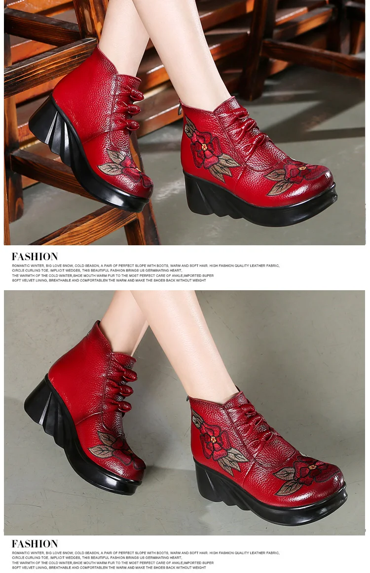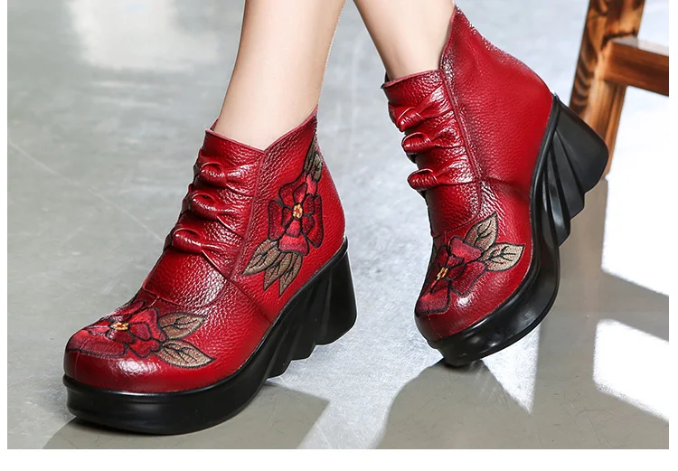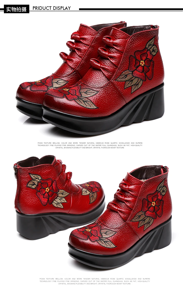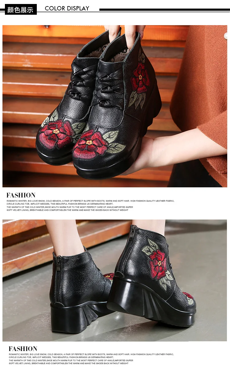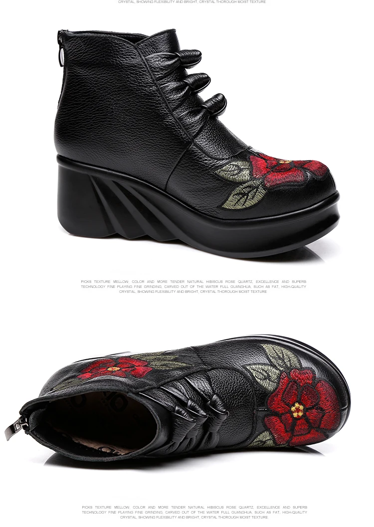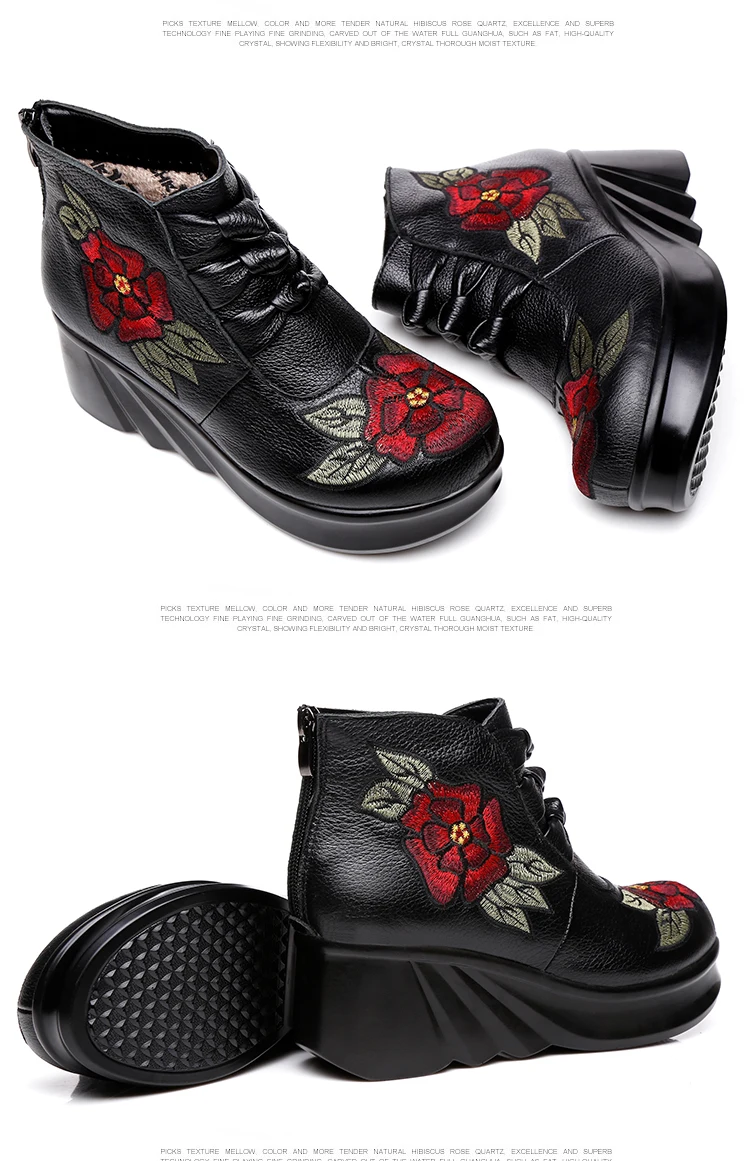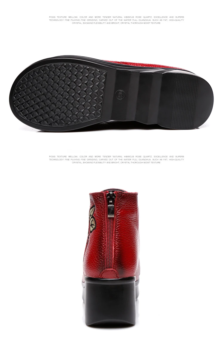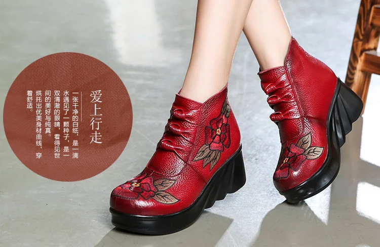 Женские ботильоны ручной работы из натуральной кожи, винтажная обувь на платформе, ботинки на танкетке с круглым носком