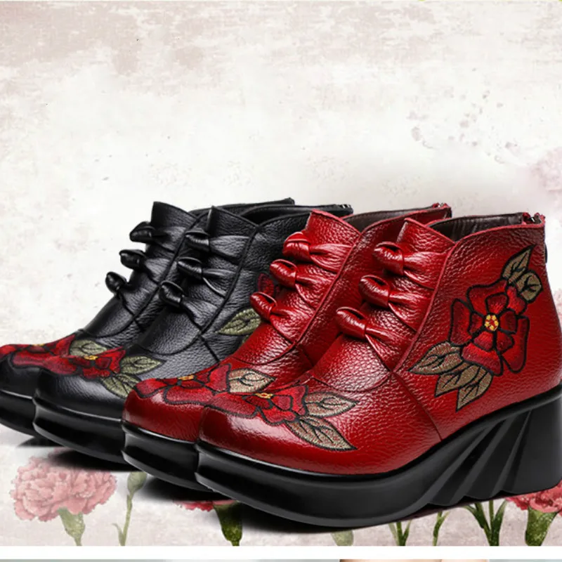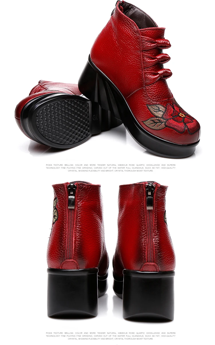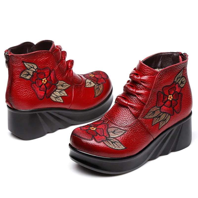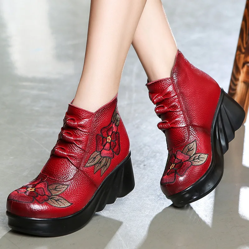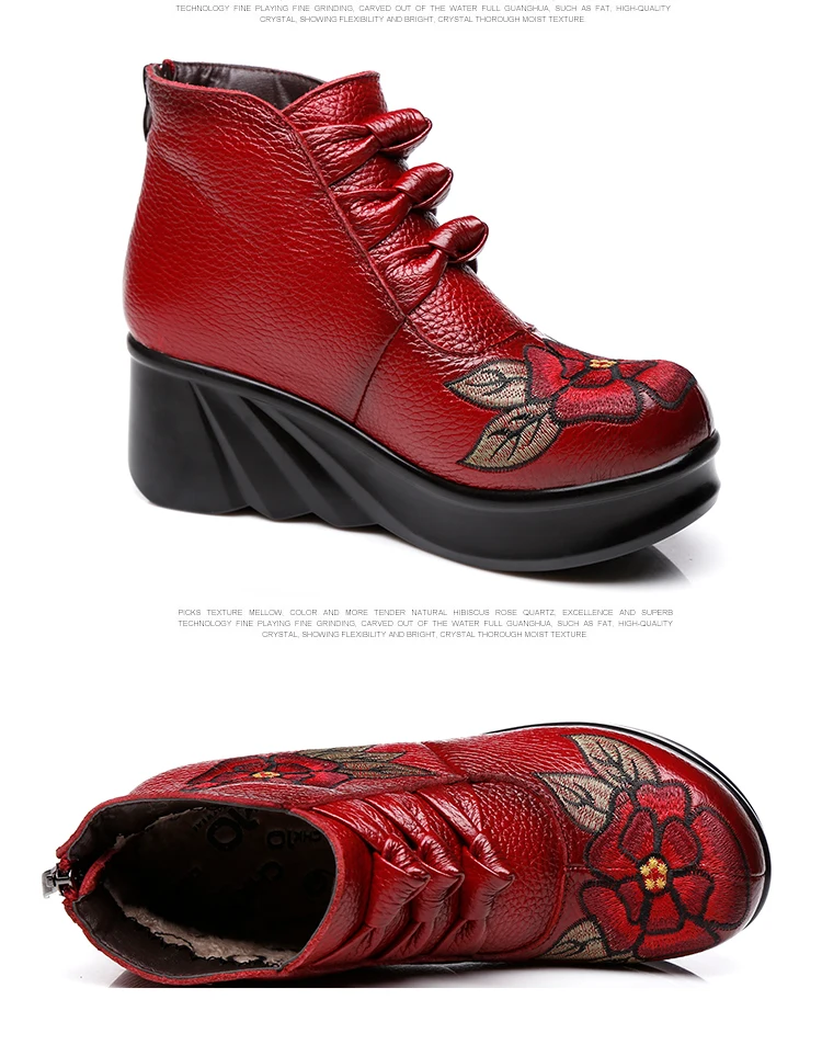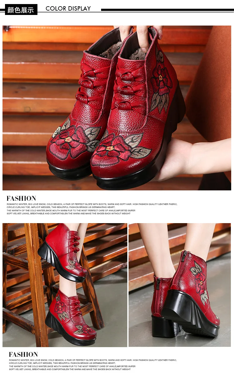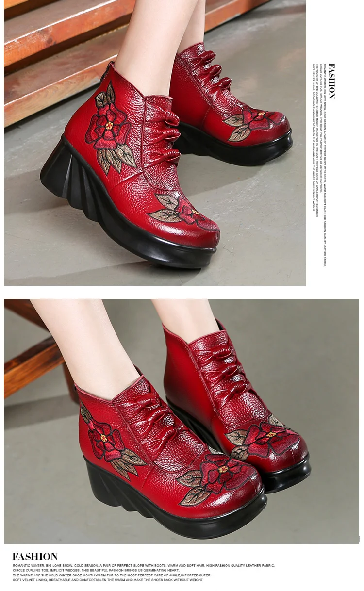 Женские ботильоны ручной работы из натуральной кожи, винтажная обувь на платформе, ботинки на танкетке с круглым носком
