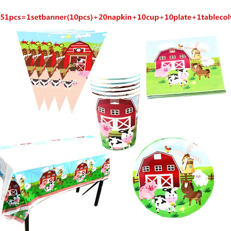 1 комплект фермы Животные корова свинья на день рождения в стиле Вечерние Декор набор посуды пластины салфетки под чашки соломы вечерние Реквизит Baby Shower поставки