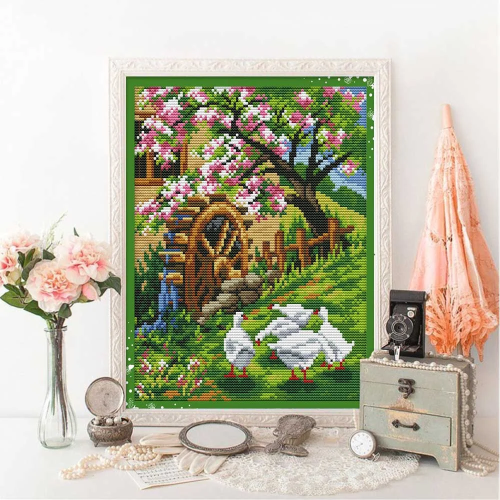 Хуакан крест вышивка дом набор декорации рукоделие вышивка озеро на...