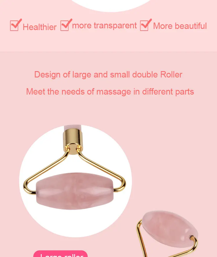 Информация о товаре:1. Наслаждайтесь естественным и полезным массажем-нефритовый ролик изготовлен из 100% натурального Нефритового камня. Омолаживающая, против морщин линия, уменьшает темные под глазами, улучшает кожу и здоровье без каких-либо химических веществ или раздражителей.2. Двусторонний валик из розового кварца-Большой валик идеально подходит для шеи, подбородка, щек и лба, в то время как меньший идеально подходит для вокруг глаз, носа и губ. Валик способствует циркуляции крови, что способно уменьшить отечность и морщины.3. Содержательный и особенный подарок-подарите особенному подарок любви. Нефритовый роллер поставляется в красиво оформпосылка вке, которая может стать значимым подарком для старшего, мамы, бабушки, жены, дочки, сестры.Особенности:*. Снимает напряжение на лице.*. Усиливает эластичность кожи подтягивая и тонизируя кожу.*. Препятствует появлению тонких линий и морщин.*. Уменьшает отечность, мешки под глазами и темные круги вокруг глаз.*. Помогает глубже проникать в кожу косметические средства, такие как кремы для лица и сыворотки, для лучшего впитывания.*. Способствует циркуляции крови к лицу для естественного здорового сияния.Характеристики:Цвет: розовыйРазмер: 160*54*20 ммСпособ применения:1. Умыть лицо обычными очищающими средствами.2. Нанесите любые ночные кремы на лицо и шею.3. Движениями вверх аккуратно Двигайте нефритовым роликом по лбу, щекам, вокруг области губ и шеи. Закройте глаза и осторожно переверните по векам, если у вас пухлые глаза или мешки под глазами.4. Используйте валик на лице и шее в течение 5-10 минут.5. Используйте нефритовый роллер три раза в неделю для уменьшения линий и морщин.