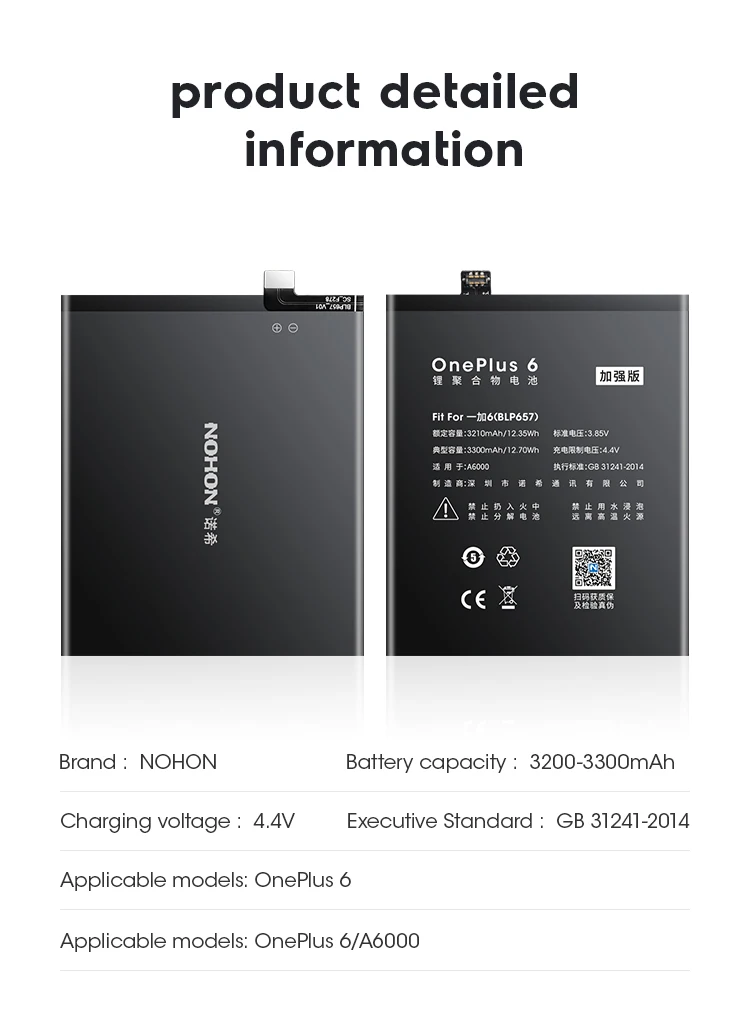 BLP657For Oneplus 6 A6000 Battery 3300mAh