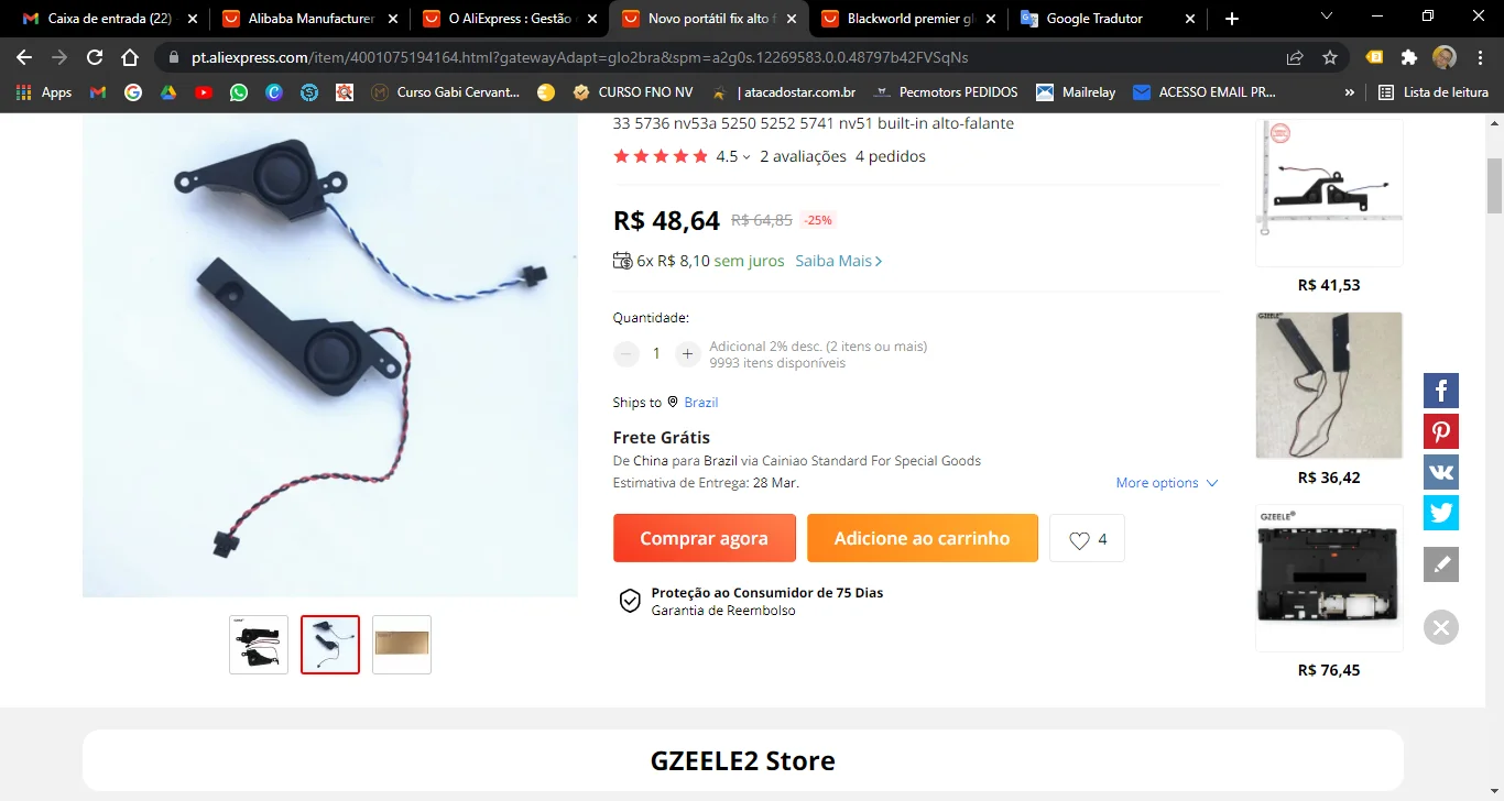 Продукт пришел неправильно, и превысил 15 дней, чтобы открыть спор, не может решить с продавцом, просто обратитесь, чтобы увидеть, что деталь пришла, когда неправильно монтируется в блокноте, попробовал связаться с продавцом, но он говорит, что я сделал запрос по неправильной модели, И я отправил ссылку на товар и фотографии, подтверждающие его ошибку. Покупайте этот магазин, Останется с травмой, они пропустили и не хотят. Моя модель Acer 5741, как и ad, и мне прислали динамик, который подходит только для модели Acer 5755, которые такие же, но динамик немного больше и находится в моем ноутбуке.