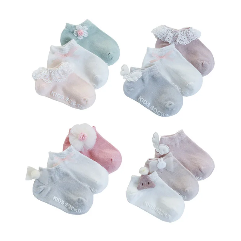 3 парлот; Милые носки для новорожденных; Детские носки с кружевными цветочными крыльями; Нескользящие носки-тапочки для малышей с резиновой подошвой