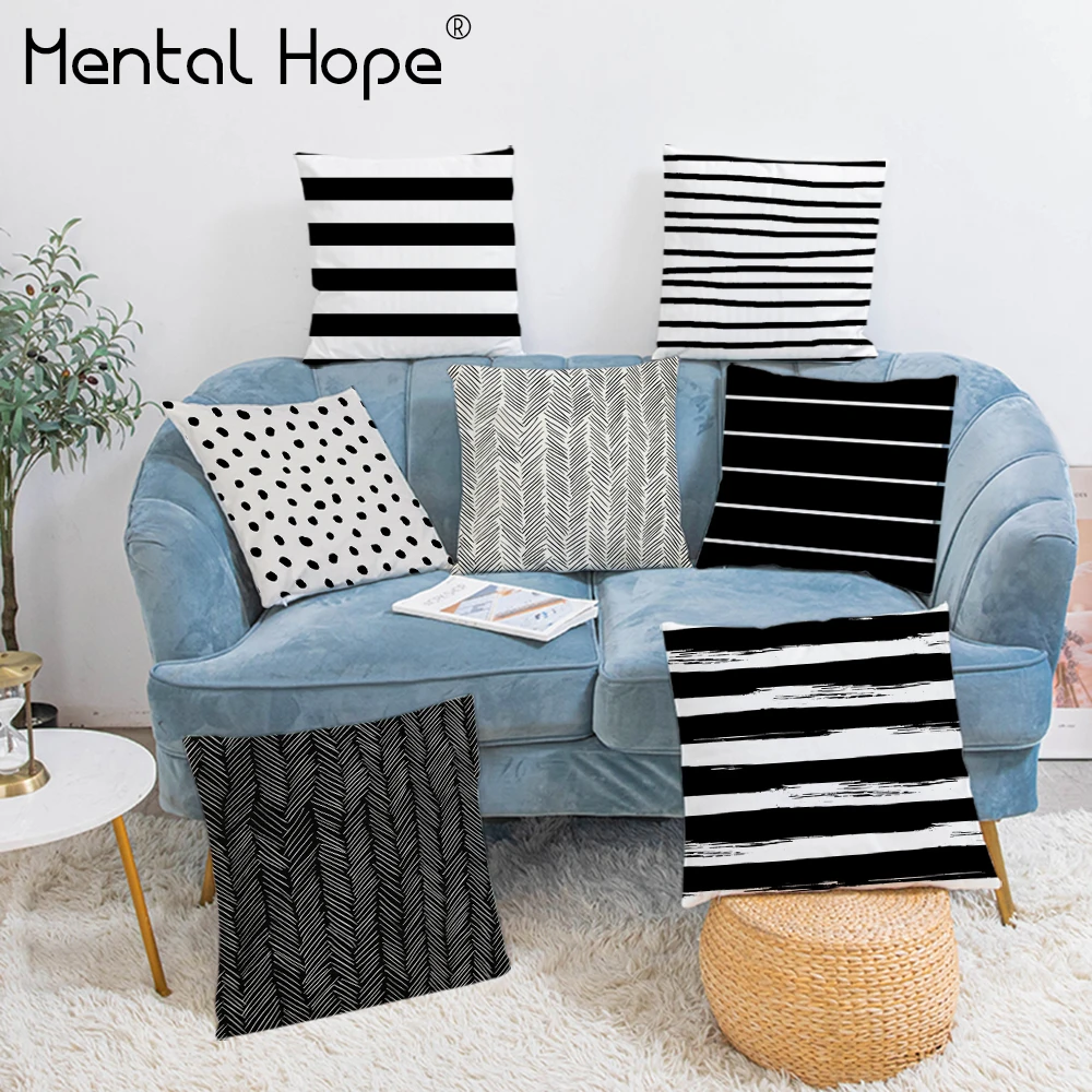 Наволочка плюшевая с геометрическим принтом, декоративная квадратная наволочка в черную полоску и горошек, домашний декор