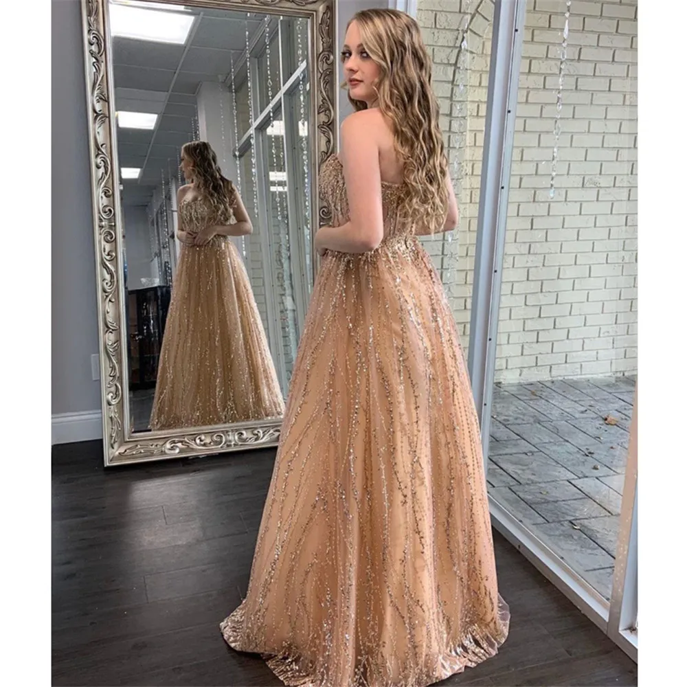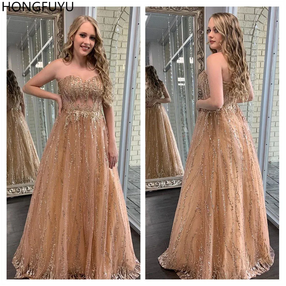 Женское вечернее платье с блестками HONGFUYU, блестящее платье цвета шампанского трапециевидной формы с аппликацией, бальное платье длиной до пола