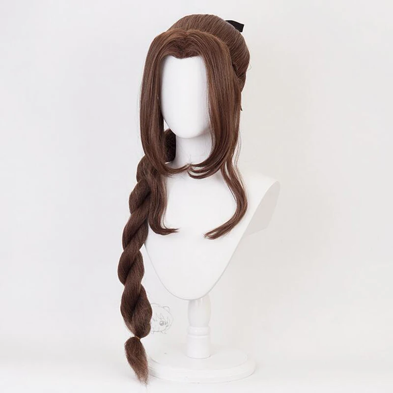 Парик для косплея гейнелл Фэнтези VII Aerith gainsborо, 100 см, косичка, женские волнистые кудрявые челки, завивка волос