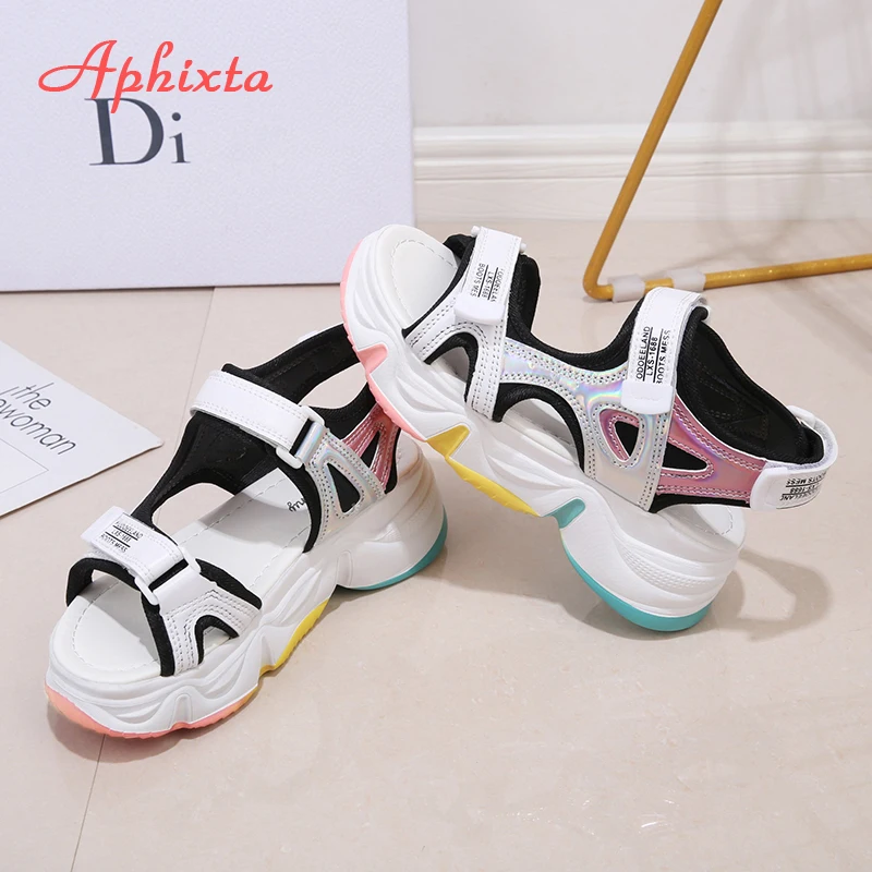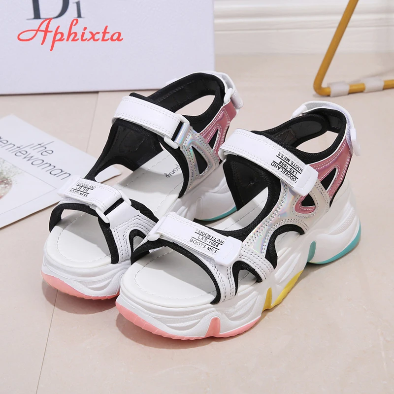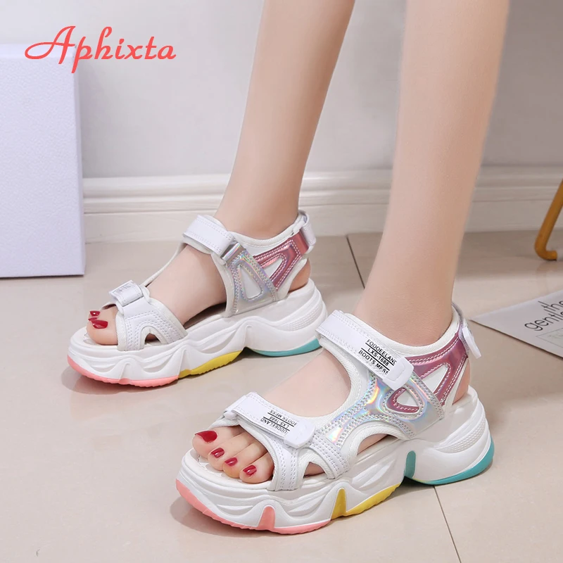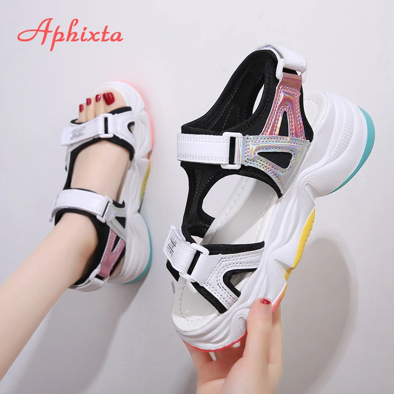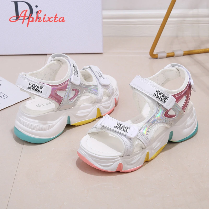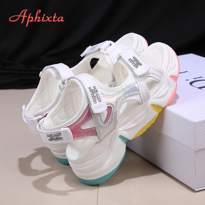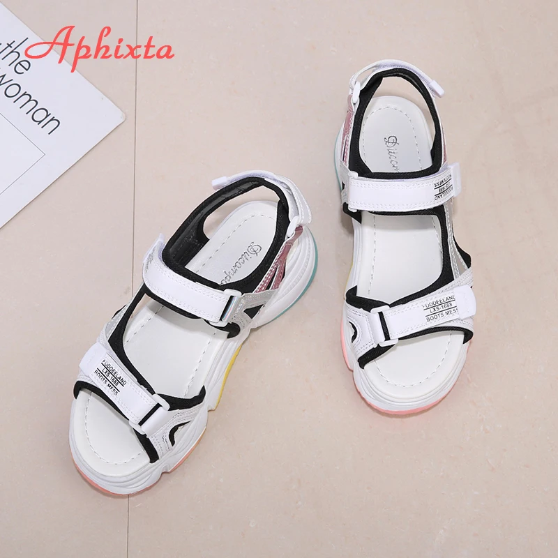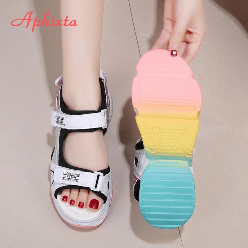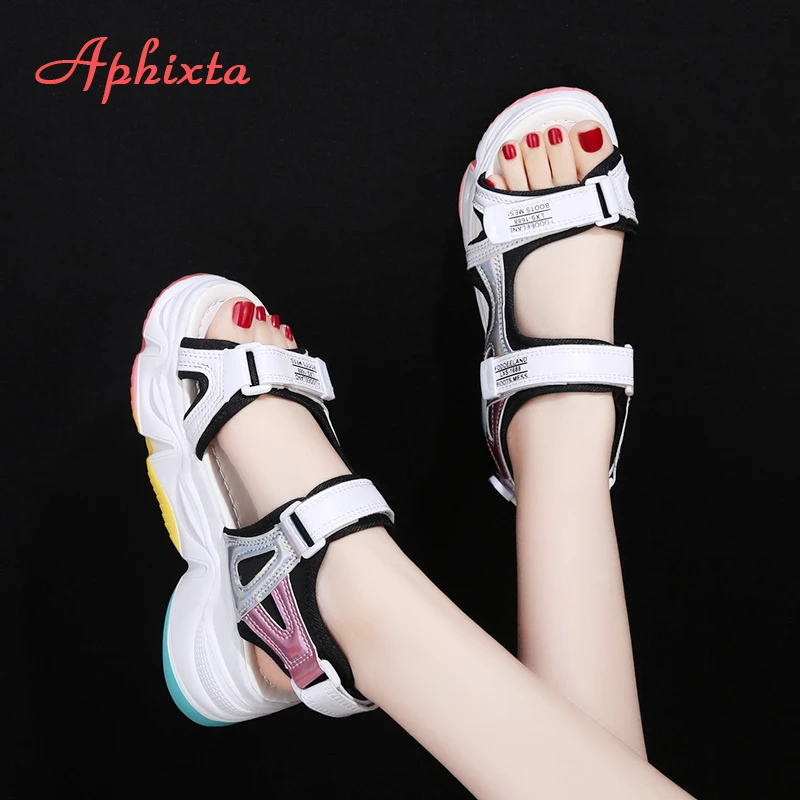 Женские босоножки на танкетке Aphixta, сандалии на радужной подошве, на платформе 5,5 см, большие размеры 42