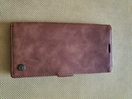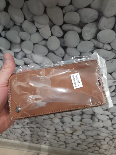 Я долго ждал заказ, около 2 месяцев и наконец получил. Я доволен, что заказ всё равно получил. Товар соответствует описанию. Товар был хорошо упакован, без повреждений. Чехол напоминает мужской кошелёк, стильно выглядит, приятный на ощупь. В него можно класть 2 пластиковые карты и деньги. Этот чехол маркий и его нужно класть только на чистые поверхности и всегда брать чистыми руками. Остаются видимые следы загрязнений.