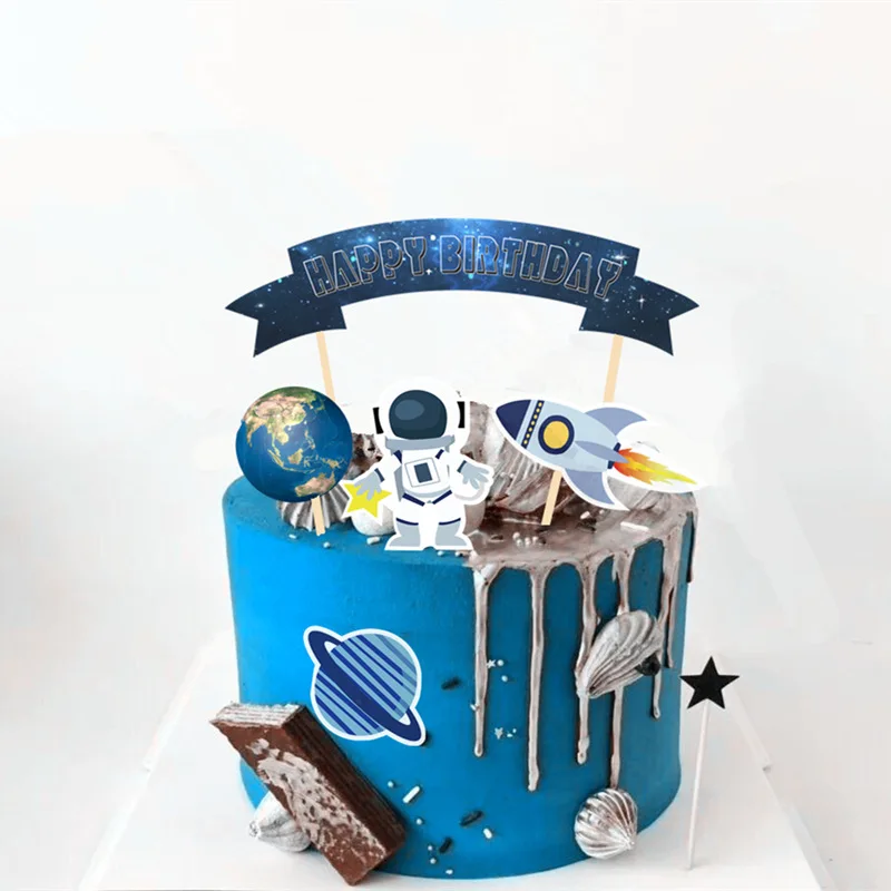 Космос торт Топпер мультфильм ракета торт украшения с днем рождения...