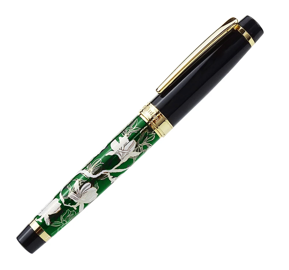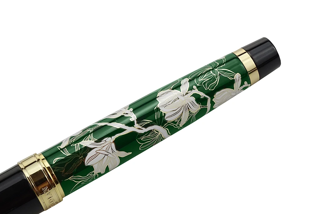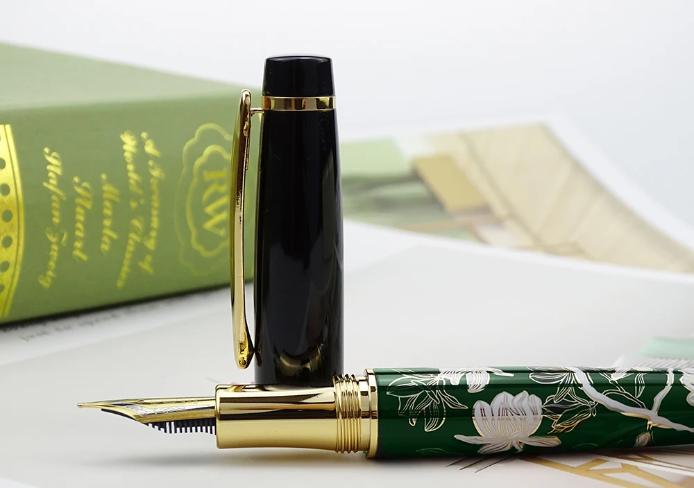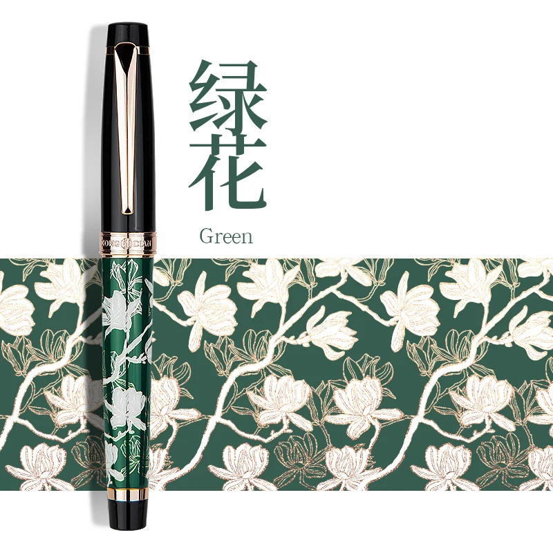 HongDian металлическая авторучка ручной работы зеленые цветы иридий Экстра тонкая/изогнутая чернильная ручка перьевая отличная авторучка для письма для бизнеса: