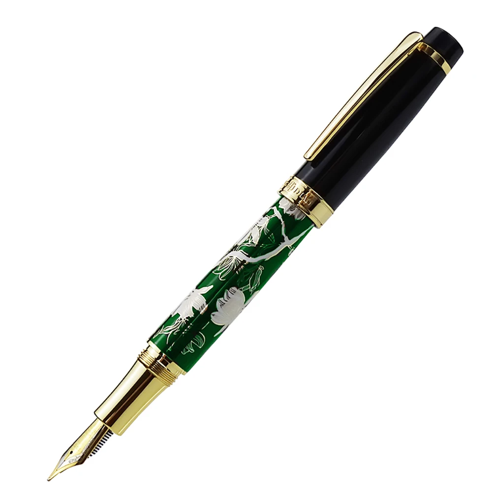 HongDian металлическая авторучка ручной работы зеленые цветы Iridium EFFизогнутая чернильная ручка перьевая отличная авторучка в подарок для бизнеса
