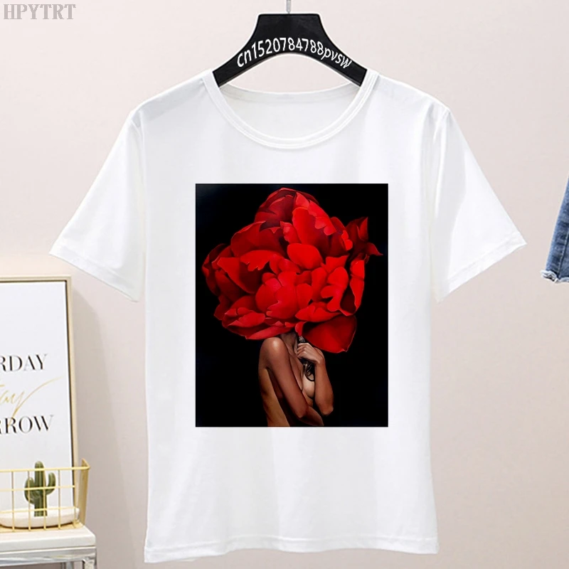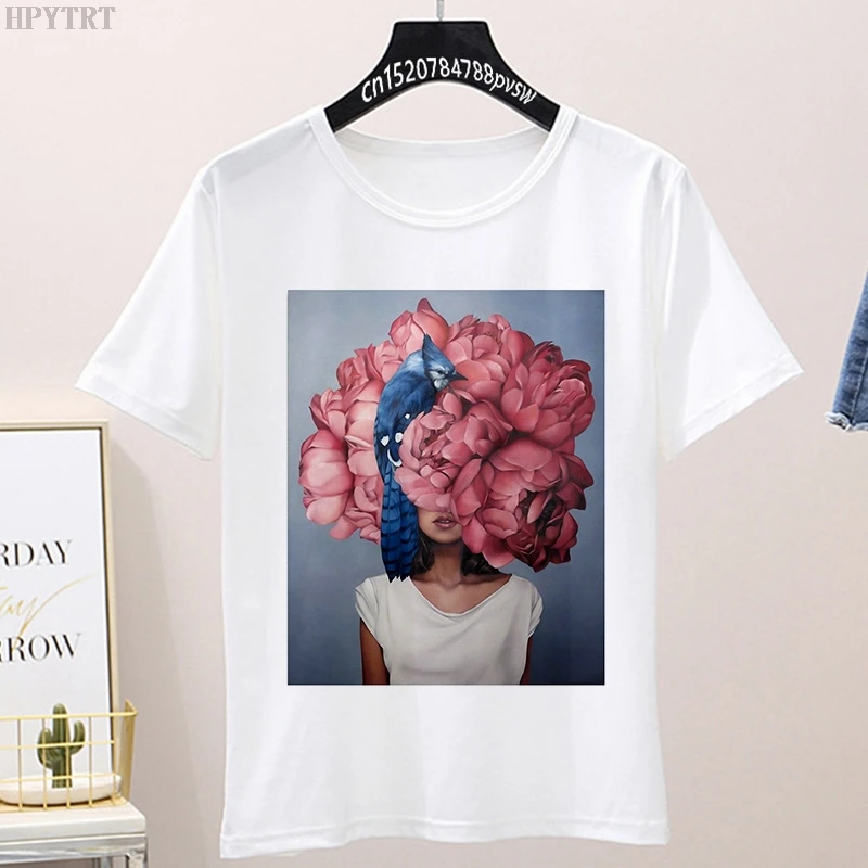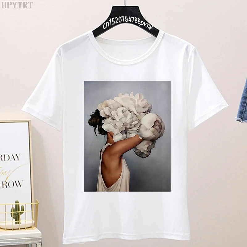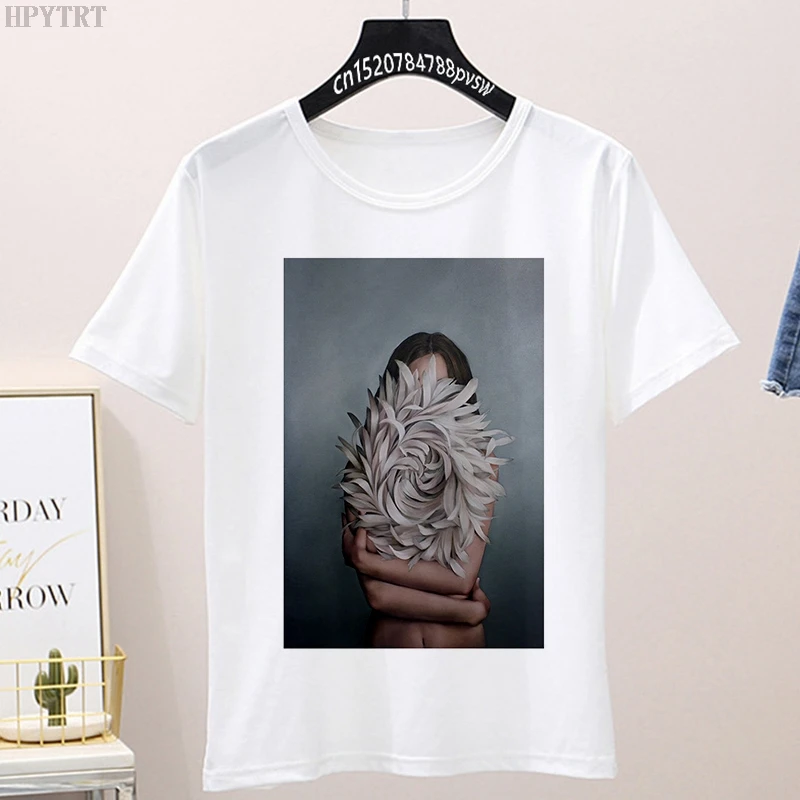 Женская Новинка 2020 harajuku белая футболка с винтажным цветочным ...