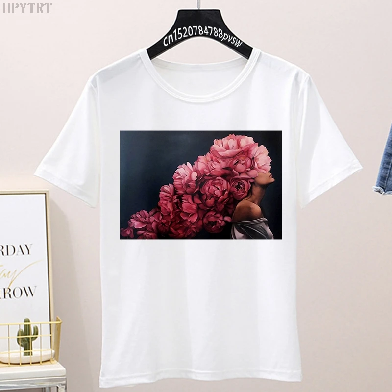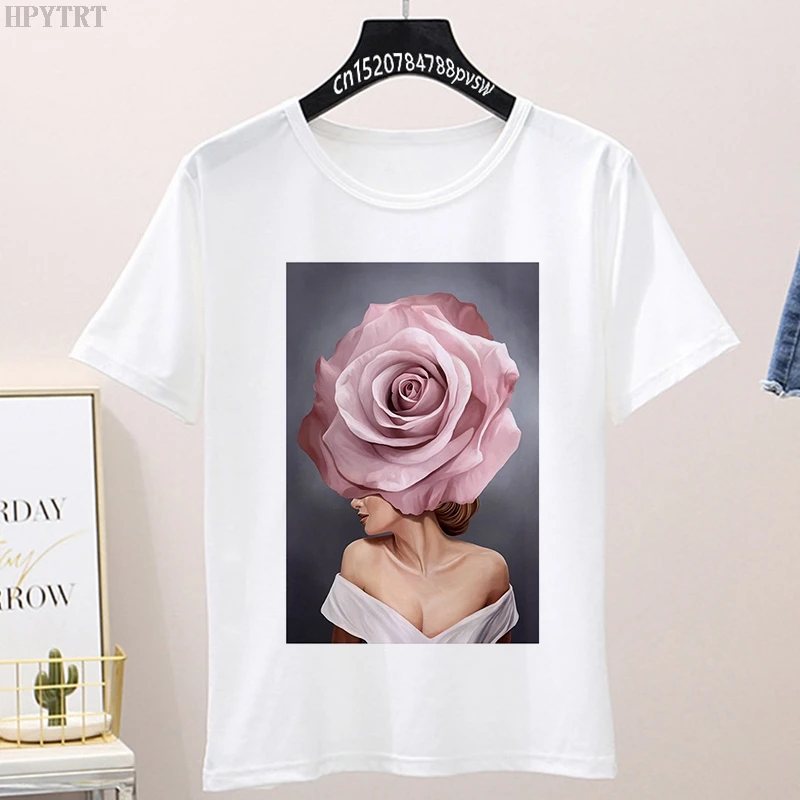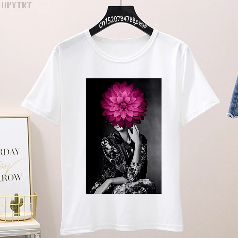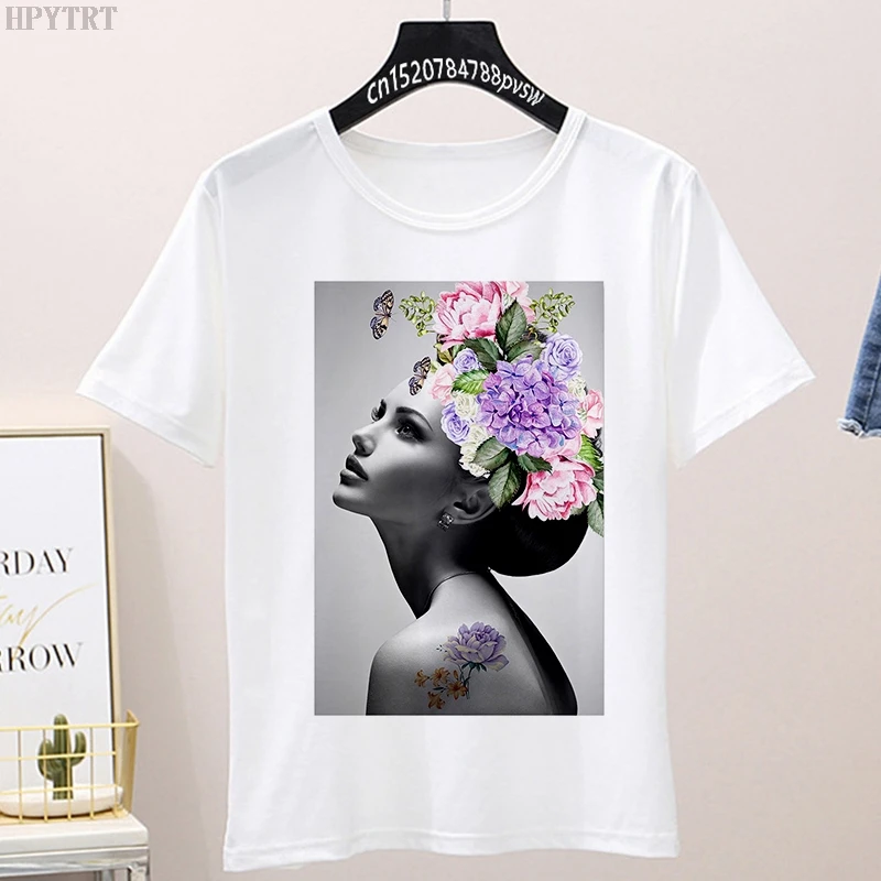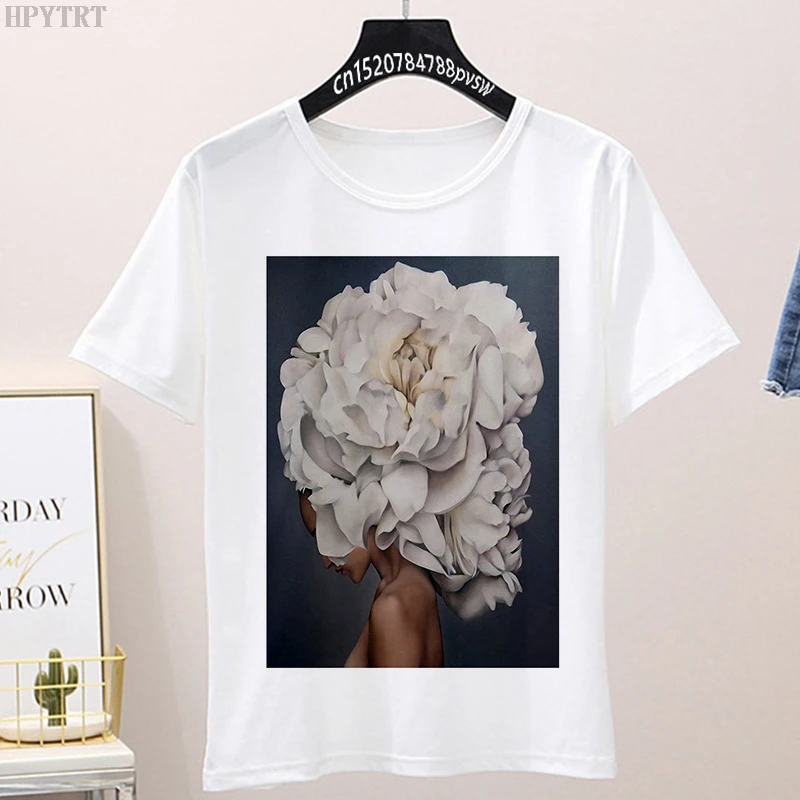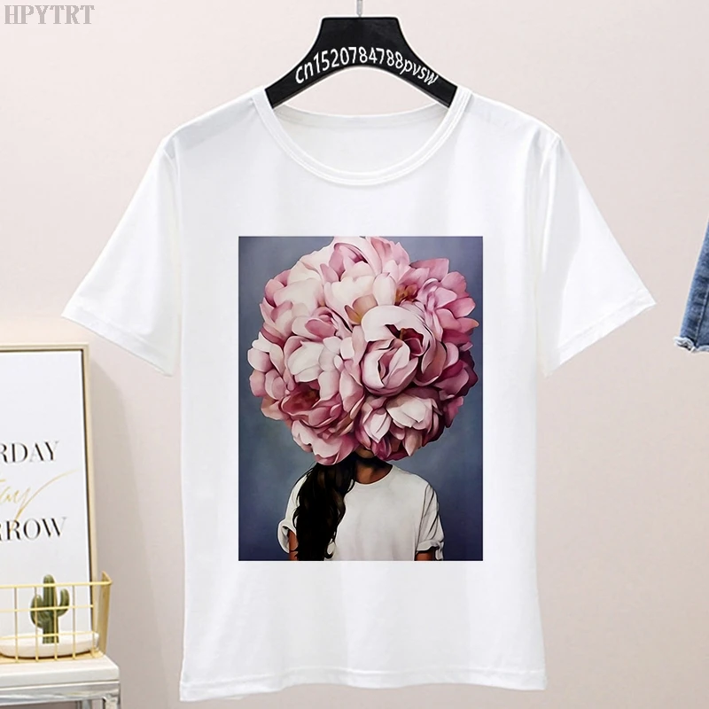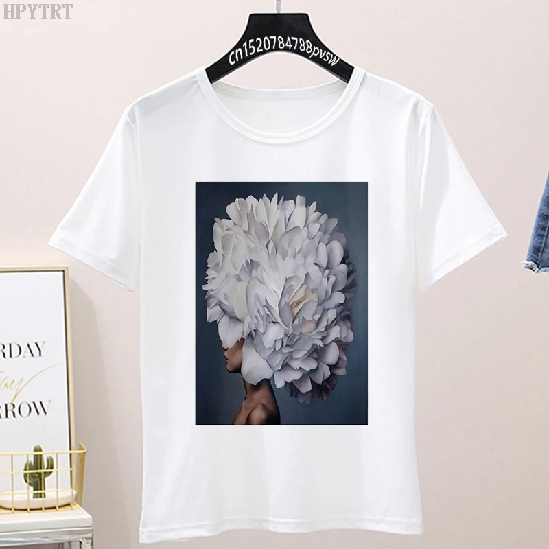 Женская футболка с цветочным принтом, белая, летняя, в стиле Харадзюку