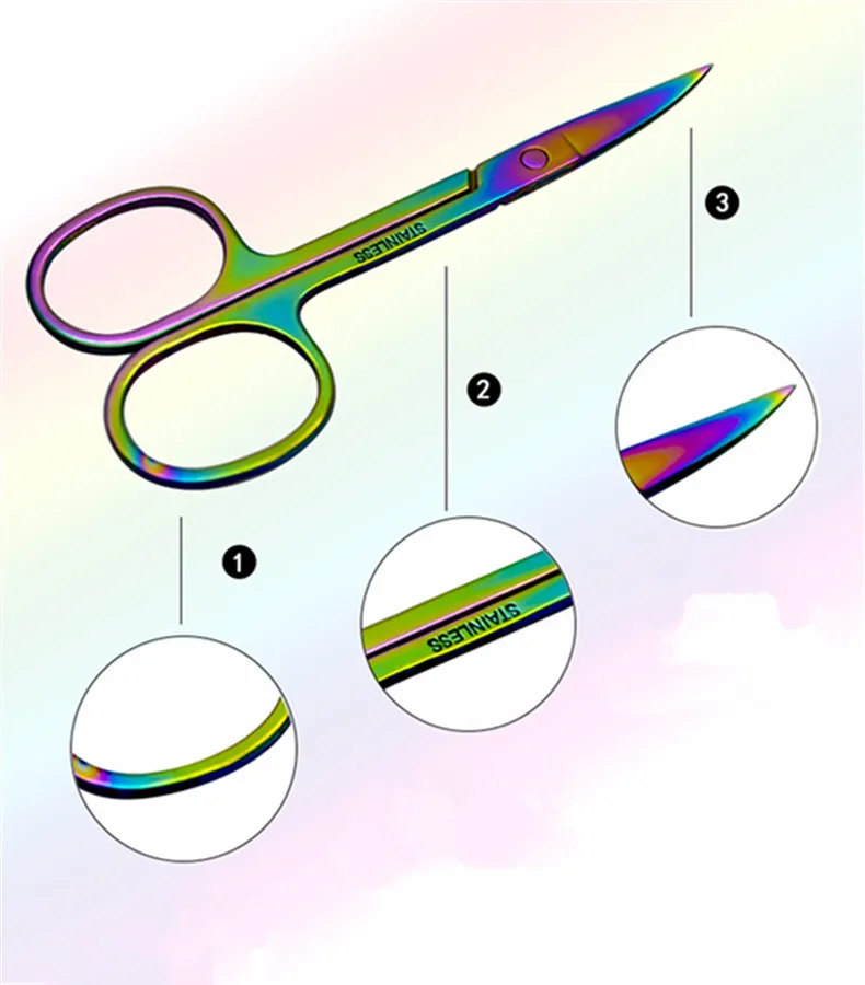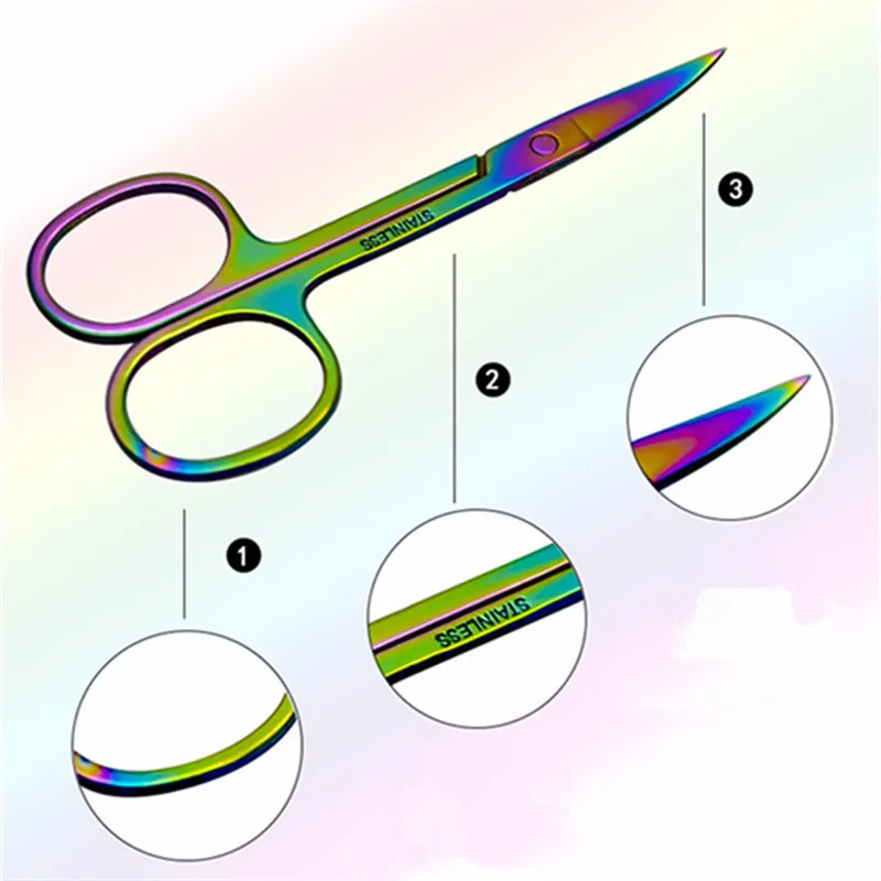 Красочные профессиональные ножницы для бровей из нержавеющей стали, обрезка волос, красота, макияж, для ногтей, для удаления омертвевшей кожи, ножницы, инструмент для макияжа